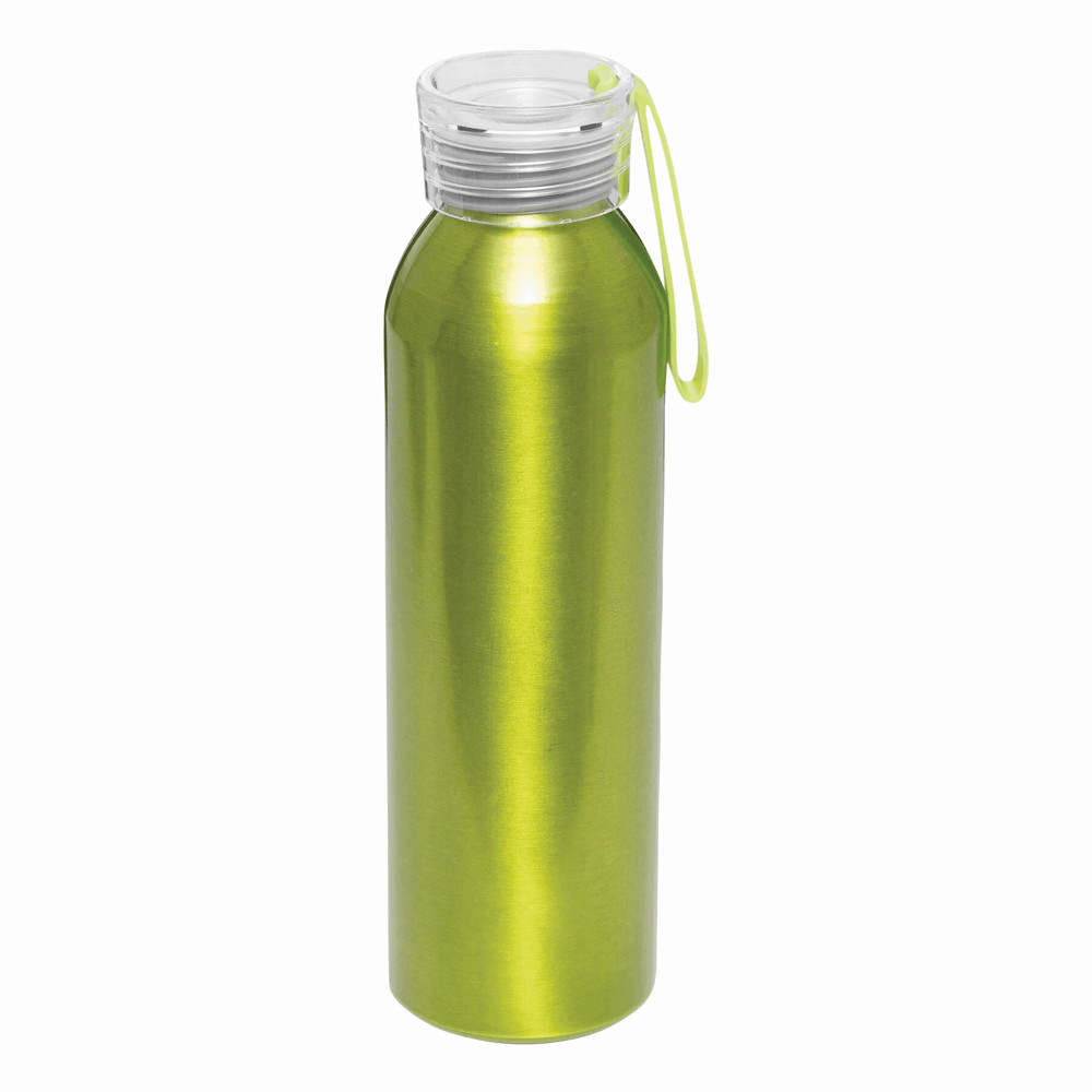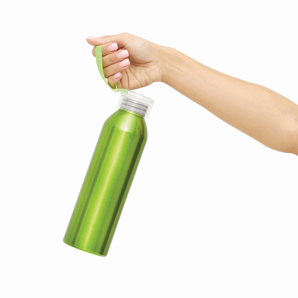 Aluminium Trinkflasche LOOPED, einwandig: transparenter Kunststoffdeckel mit Schraubverschluss, Silikonschlaufe, Füllmenge ca. 650 ml