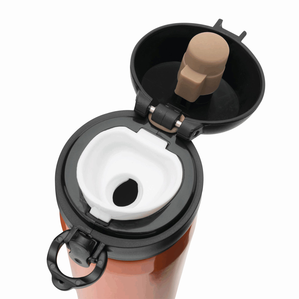 Vakuum-Trinkflasche OOLONG, doppelwandig,: innen und außen aus Edelstahl, Kunststoff-Deckel mit Klappverschluss, Sicherheitsverriegelung, integrierter Trinköffnung, Füllmenge ca. 400 ml, halt ca. 6 Stunden warm und bis zu 12 Stunden kalt, in Box