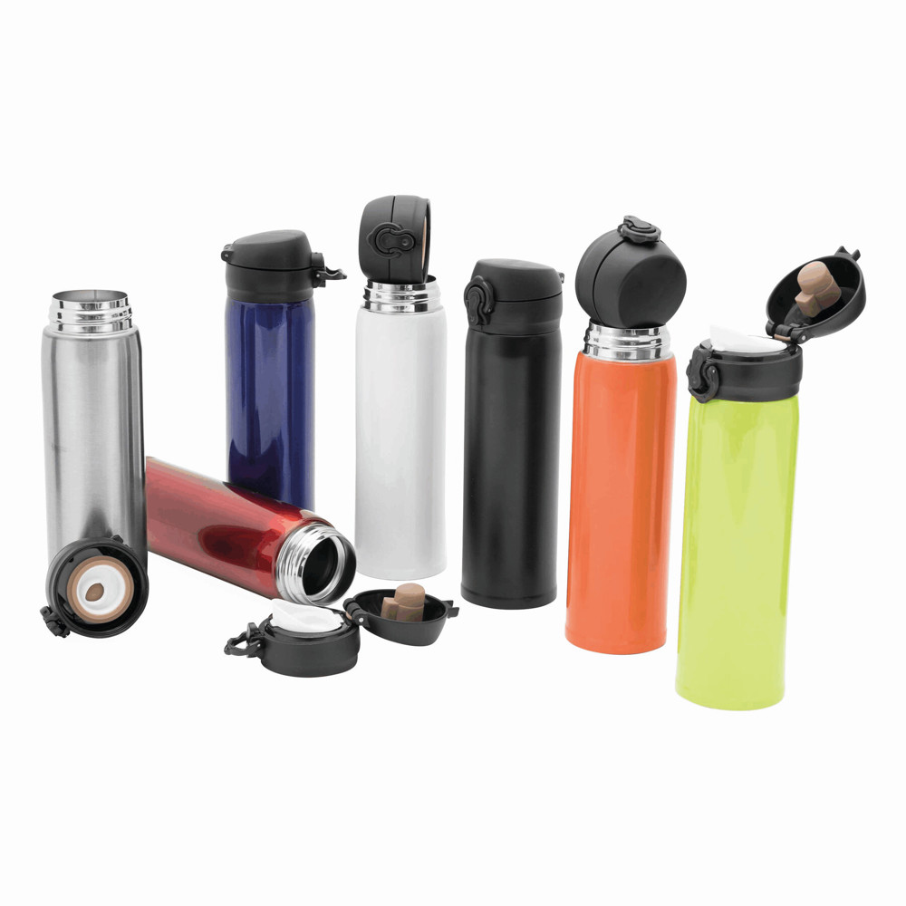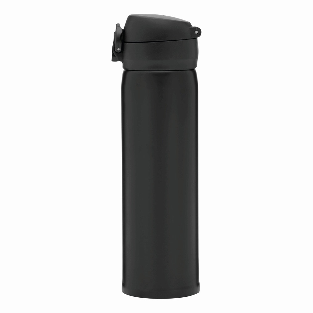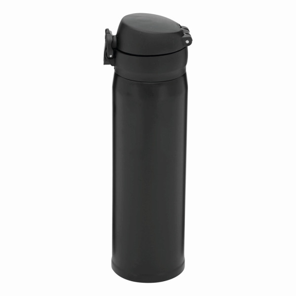 Vakuum-Trinkflasche OOLONG, doppelwandig,: innen und außen aus Edelstahl, Kunststoff-Deckel mit Klappverschluss, Sicherheitsverriegelung, integrierter Trinköffnung, Füllmenge ca. 400 ml, halt ca. 6 Stunden warm und bis zu 12 Stunden kalt, in Box