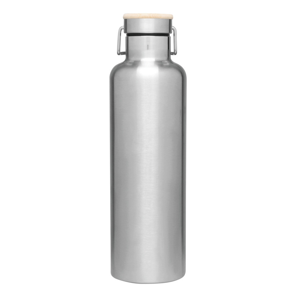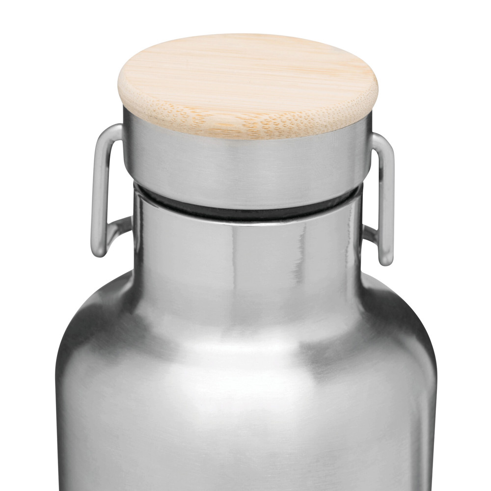 Vakuum-Isolierflasche JUMBO MILITARY, doppelwandig: außen und innen aus Edelstahl, Deckel mit Bambus, sicherer Schraubverschluss, Füllmenge ca. 1.000 ml, hält ca. 8 Stunden warm und bis zu 12 Stunden kalt