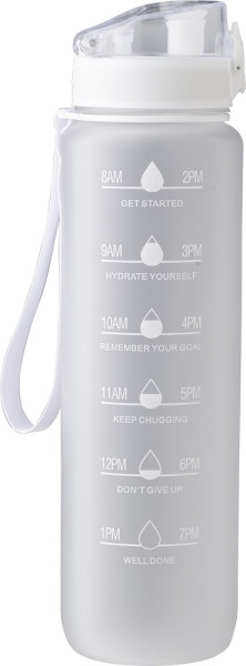 rPET-Trinkflasche (1000 ml) mit matter Oberfläche und Handgelenkband. Auslaufsicher.