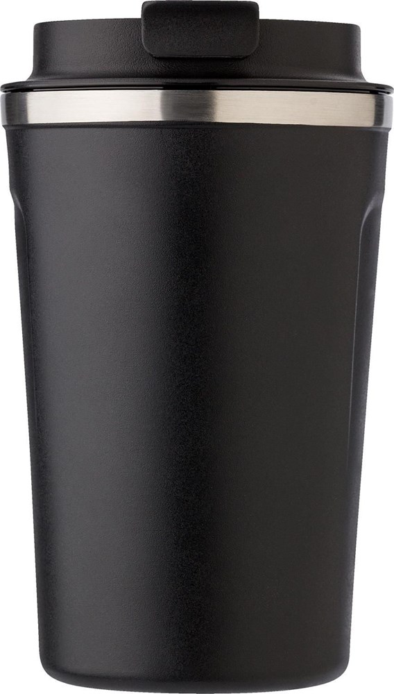 Doppelwandiger Becher aus Edelstahl (380 ml) mit Deckel und auslaufsicherem Verschluss.