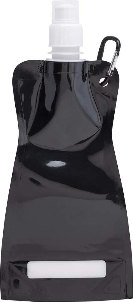 Trinkflasche aus Kunststoff, faltbar, Inhalt ca. 400 ml, mit Schnellverschluss und Kappe, Karabinerhaken.