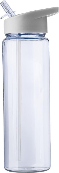 rPET-Trinkflasche (750 ml) mit faltbarem Strohhalm im Deckel.