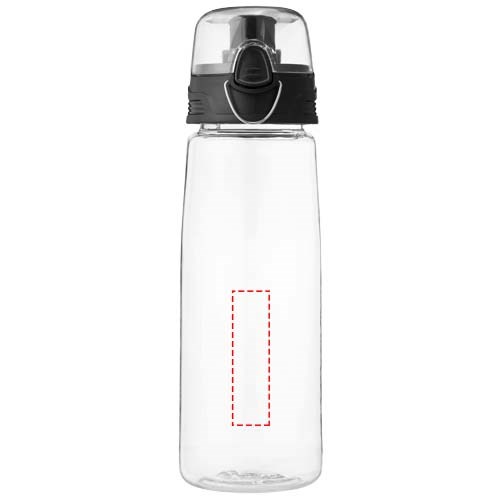 In durstigen Zeiten ist die leichte Capri 700 ml Sportflasche ein Lebensretter. Die Flasche hat einen aufklappbaren Trinkdeckel mit Ausgießer, der sie schützt und sauber hält. Mit dem Druckknopf lässt sie sich leicht öffnen. Die transparente Flasche besteht aus robustem, flecken- und geruchsfreiem Eastman Tritan™ und ist somit langlebig und BPA-frei.