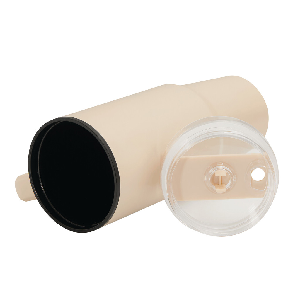 Trinkbecher DRINK ULTY, doppelwandig: innen aus Kunststoff und außen aus Edelstahl, mit praktischem Griff, transparenter Kunststoff-Deckel mit sicherem Schraubverschluss, Silikon-Dichtring, Trinköffnung mit Drehverschluss und transparentem Strohhalm, beschichteter Boden für gute Oberflächenhaftung, Füllmenge ca. 900 ml, hält ca. 2 Stunden warm und bis zu 4 Stunden kalt, in Box