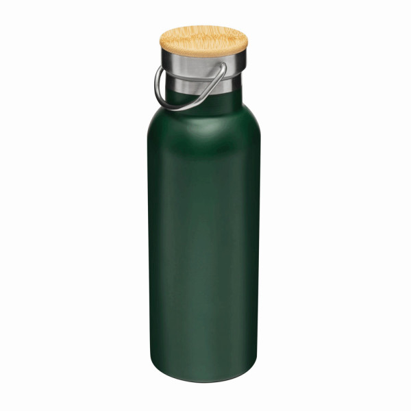 Vakuum-Trinkflasche ECO FLAVOUR, doppelwandig: innen und außen aus Edelstahl, Bambus-Deckel mit sicherem Schraubverschluss, Silikon-Dichtring und Tragegriff, Füllmenge ca. 500 ml, hält ca. 8 Stunden warm und bis zu 12 Stunden kalt