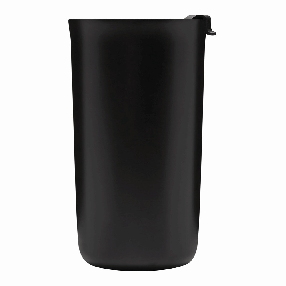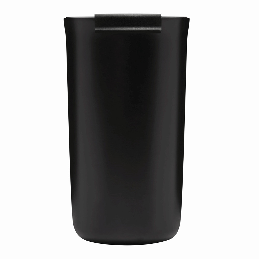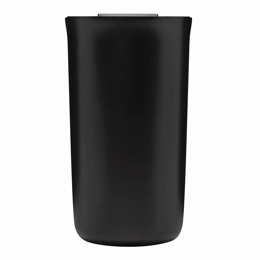 Vakuum-Isolierbecher NOBLE, doppelwandig: innen und außen aus Edelstahl, schwarzer Kunststoff-Deckel mit Silikon-Dichtring, integrierter Trinköffnung zum Aufklappen, Füllmenge ca. 450 ml, hält ca. 8 Stunden warm und bis zu 12 Stunden kalt, in Box