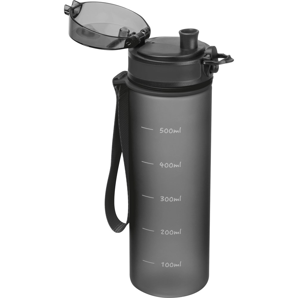 Auslaufsichere Trinkflasche aus Tritan mit Messskala und Trageschlaufe (570ml). Das robuste Material macht die Flasche zu einem besonders langlebigen Begleiter und ist frei von BPA. Ihre Werbung drucken wir auf die Flasche.