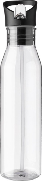 rPET-Trinkflasche (730 ml) mit klappbarem Ausgießer und Strohhalm im Inneren. Trageschlaufe an der Oberseite des PP-Deckels. Verpackt als Großpackung mit Seidenpapier.