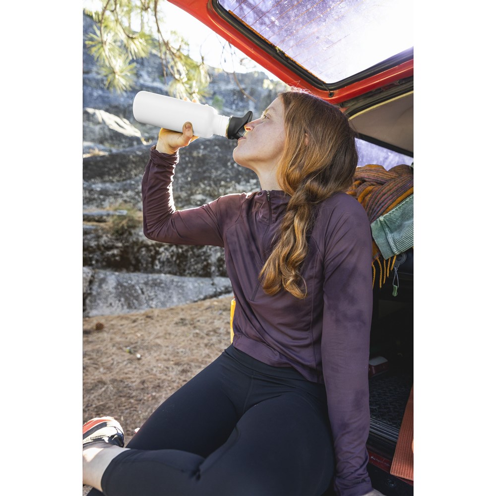 Einwandige Wasserflasche der Marke Klean Kanteen. Diese hochwertige Trinkflasche ist aus zertifiziertem, zu 90% recyceltem 18/8-Edelstahl hergestellt. Der auslaufsichere Flip Seal Sport Cap lässt sich mit einer einfachen Daumenbewegung öffnen und schließen und bietet zwei praktische Trinkoptionen. Halten Sie die Flasche aufrecht, um über den abnehmbaren Strohhalm aus Edelstahl zu trinken, oder entfernen Sie den Strohhalm und kippen Sie die Flasche, um sie als herkömmliche Sportflasche zu verwenden. Entwickelt für vielseitige Flüssigkeitszufuhr bei intensiven Aktivitäten. Wie auch immer Sie trinken, das ergonomische Design des Verschlusses gewährleistet einen konstanten Trinkfluss und ist absolut auslaufsicher. Das schlanke Modell hat einen stabilen Boden, passt in die meisten Becherhalter und ist mit einer stoßfesten Klean Coat® Pulverbeschichtung versehen. Geschmacks- und geruchsneutral. Dieses Produkt ist spülmaschinenfest. Um den Aufdruck zu erhalten, wird Waschen von Hand empfohlen. Fassungsvermögen 800 ml. Klean Kanteen ist Klimaneutral zertifiziert und Mitglied bei 1% For the Planet und unterstützt damit Umweltorganisationen.