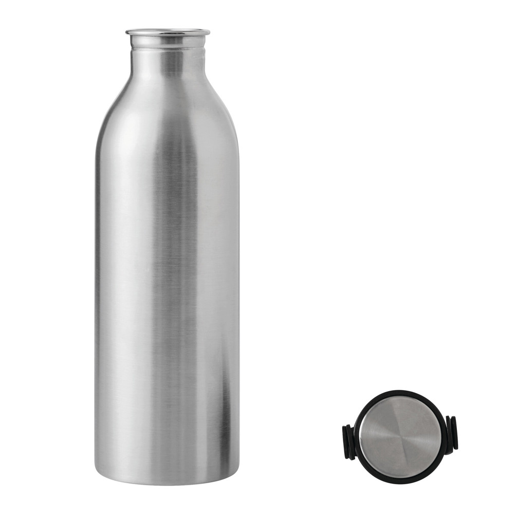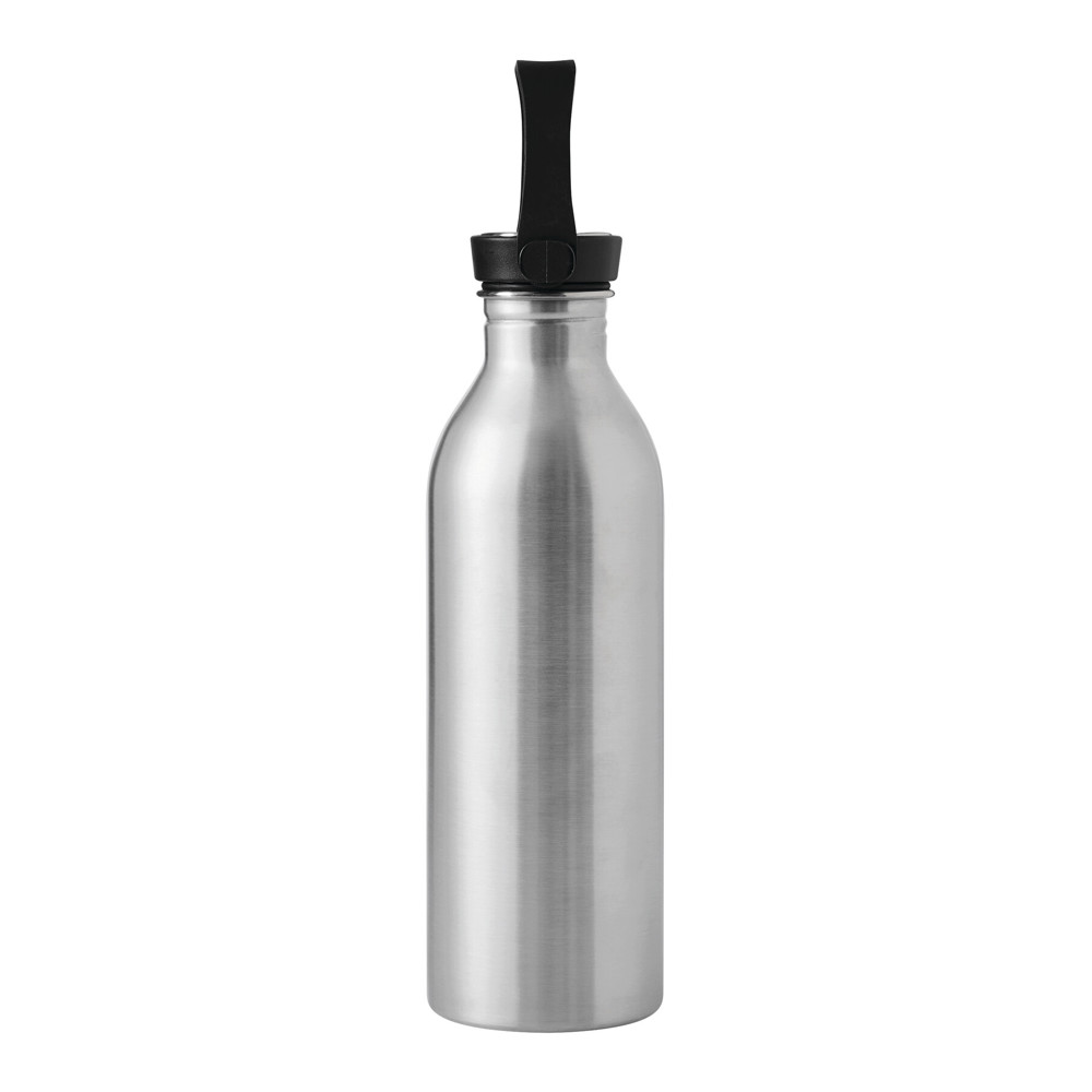 Isolierflasche GET REFRESH, einwandig: aus Edelstahl, matte Pulverlackierung, schwarzer Kunststoff-Deckel mit sicherem Schraubverschluss, Silikon-Dichtring und Silikon-Trageschlaufe, obere Deckelfläche aus Edelstahl, Füllmenge ca. 550 ml, hält ca. 2 Stunden warm und bis zu 4 Stunden kalt