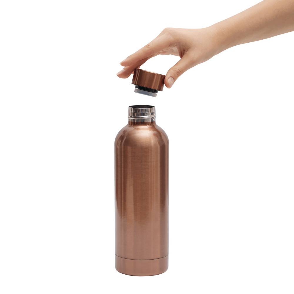 Vakuum-Isolierflasche GET WARM, doppelwandig: innen und außen aus Edelstahl, farbig passender Kunststoff-Deckel mit sicherem Schraubverschluss und Silikon-Dichtring, Füllmenge ca. 500 ml, hält ca. 8 Stunden warm und bis zu 12 Stunden kalt, in Box