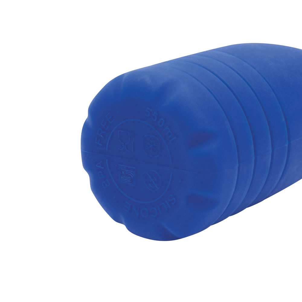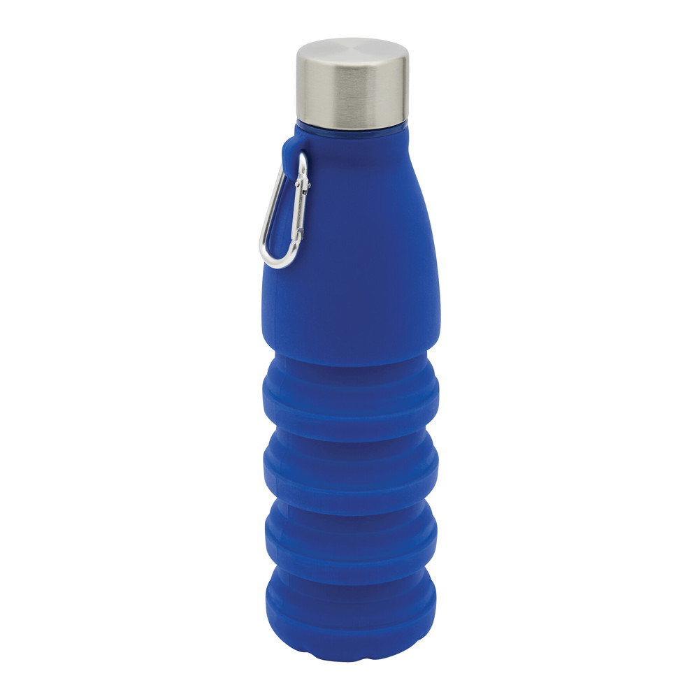 Faltbare Trinkflasche BIG GETS SMALL: aus Silikon, Edelstahl-Deckel mit sicherem Schraubverschluss und Silikon-Dichtring, mit Karabinerhaken (der Karabiner ist NICHT als Sicherung beim Klettern geeignet), die Flasche lässt sich um ca. 8 cm auseinanderziehen, Füllmenge ca. 550 ml, in Box
