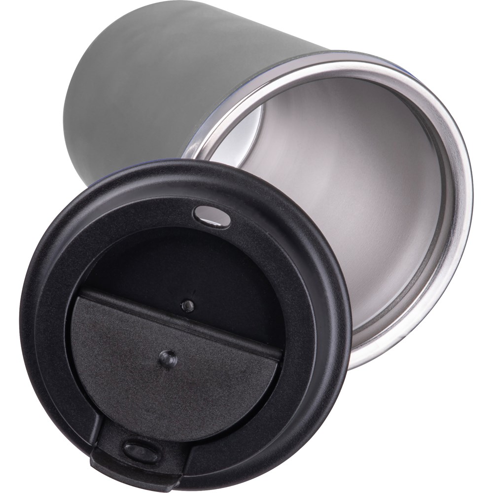 Unser doppelwandiger Trinkbecher mit Edelstahl-Innenseite und recyceltem Kunststoff außen kombiniert langlebige Materialien mit modernem Design. Mit einem Fassungsvermögen von 350 ml und einer doppelwandigen Konstruktion hält er Getränke zuverlässig warm oder kalt, während die Außenseite angenehm in der Hand liegt. Der auslaufsichere Drehverschluss mit verschließbarer Trinköffnung sorgt für eine einfache und sichere Nutzung. Ihre Werbung wird präzise auf den Becher graviert, um Ihre Marke stilvoll und dauerhaft zu präsentieren.