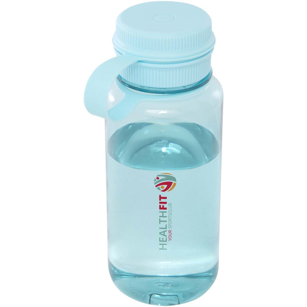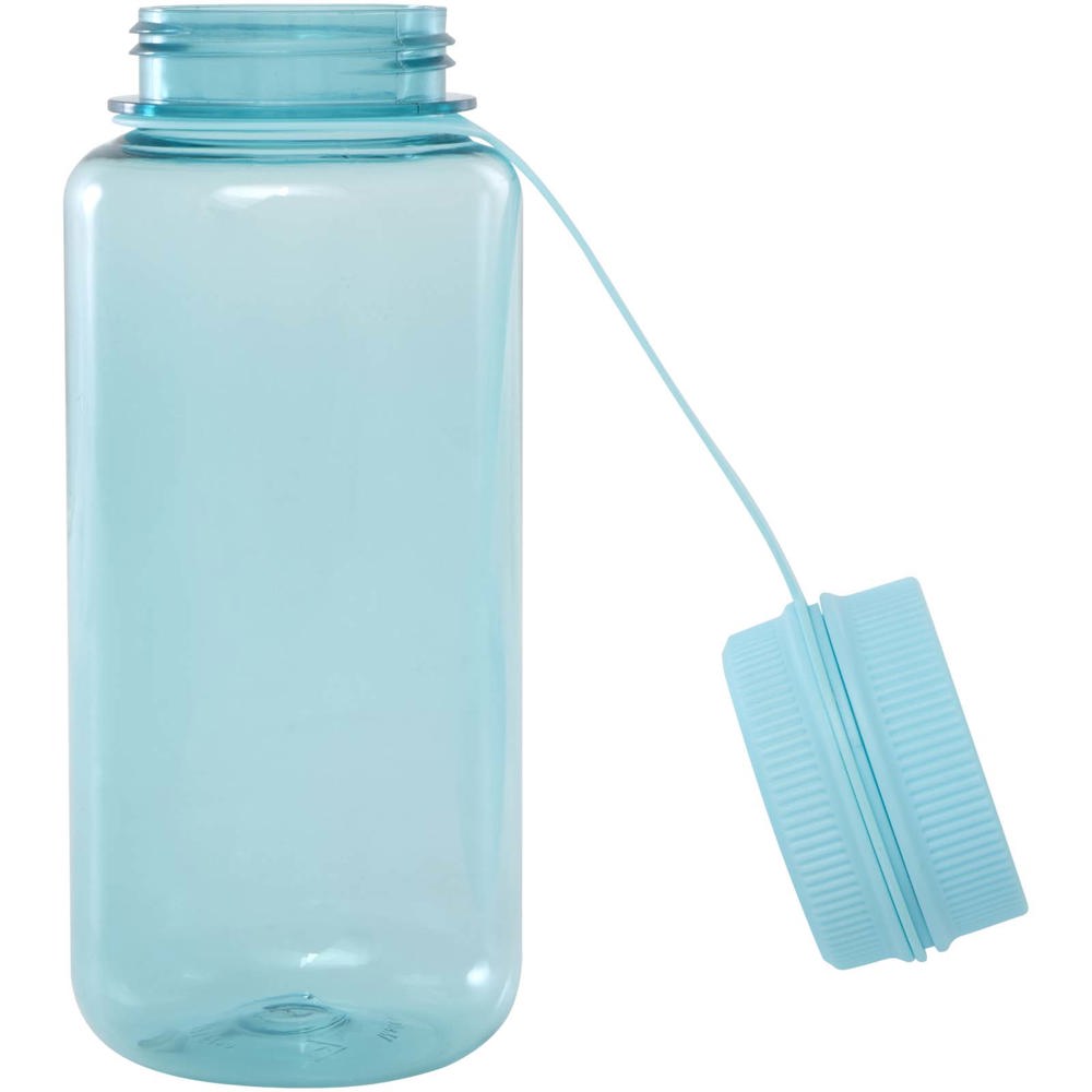 Einwandige Sportflasche aus RCS-zertifiziertem RPET mit Schraubverschluss und auslaufsicherem Deckel mit praktischem Tragegriff im Verschluss. Konstruktion mit zwei Öffnungen für einfache Reinigung und Befüllung. Entspricht dem von der EFSA (Europäische Behörde für Lebensmittelsicherheit) genehmigten PET-Recyclingverfahren. Fassungsvermögen: 900 ml.