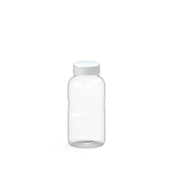 Der Allrounder. Geschmacksneutrale Trinkflasche aus robustem TritanTM und einem Deckel aus ABS, welcher sich durch seine Form perfekt für die Veredelung im UV-Digitaldruck eignet. Die Trinkflasche ist mit zwei praktischen, gegenüberliegenden Griffmulden versehen, welche für einen sicheren Halt sorgen. Die große Öffnung ermöglicht ein leichtes Befüllen und Reinigen der Flasche. Der Verschluss ist leicht zu öffnen, auslaufsicher und für kohlensäurehaltige Getränke geeignet. Füllvolumen: 0,5 Liter.