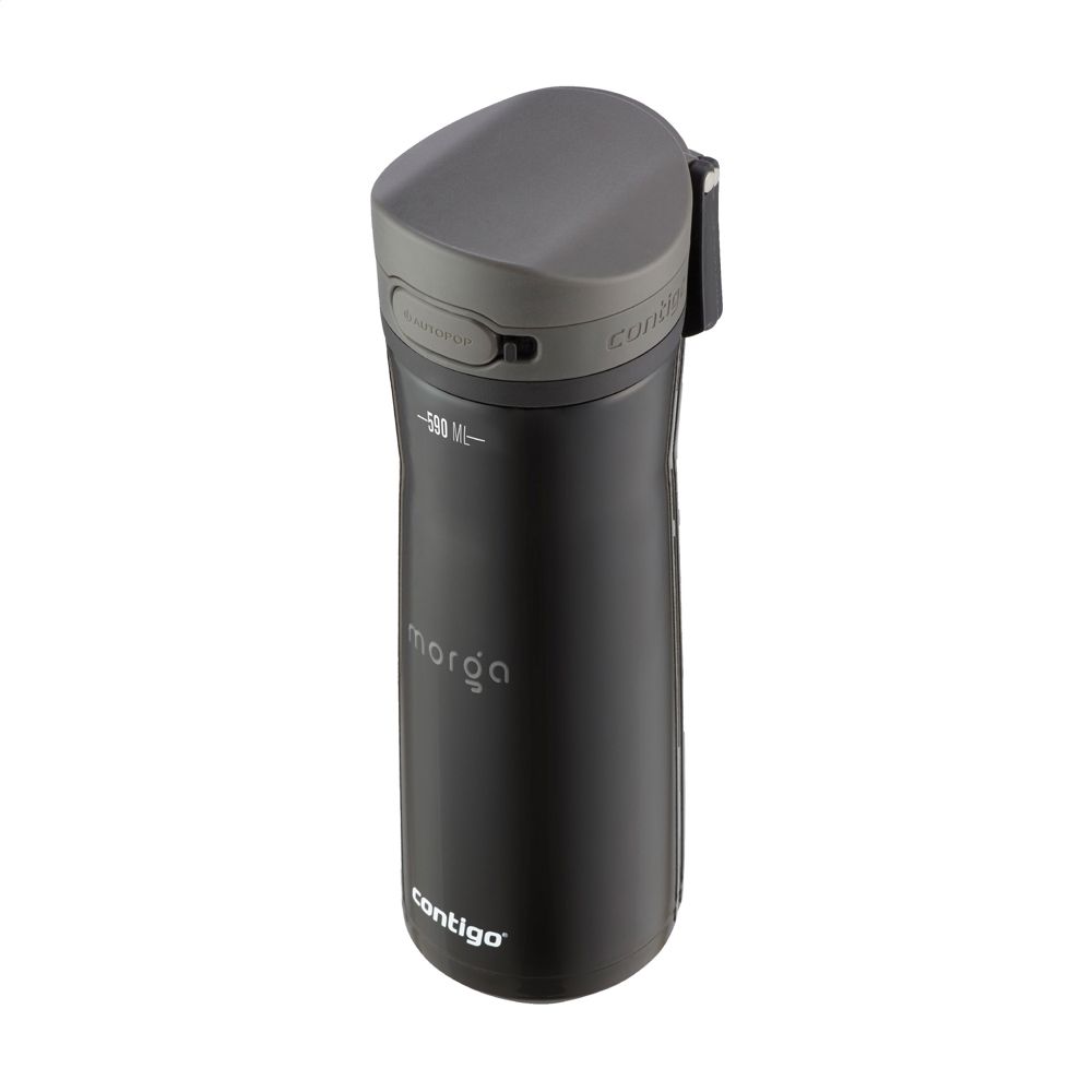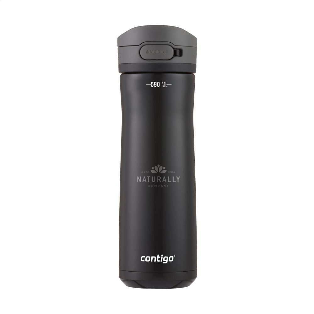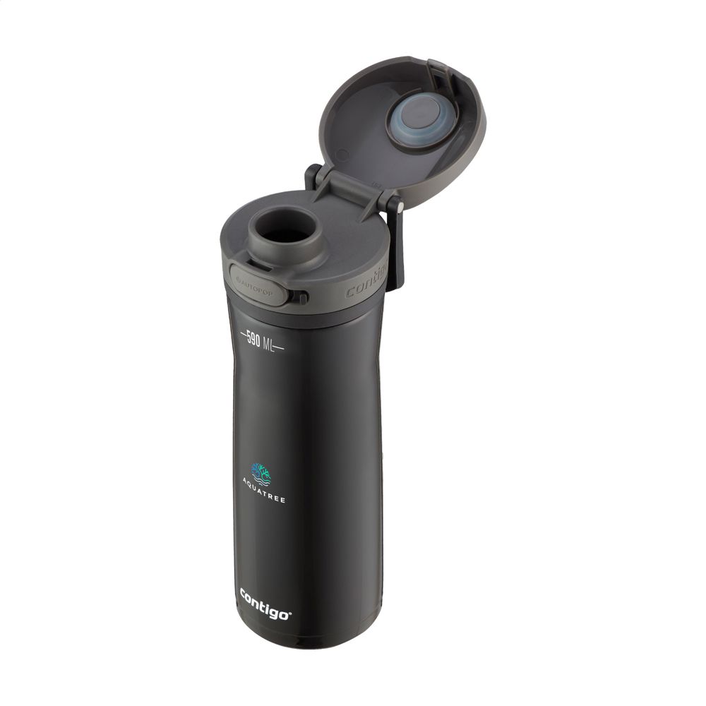 Doppelwandige, vakuumisolierte Contigo®-Wasserflasche aus Edelstahl mit AUTOPOP™-Technologie. Der Trinkverschluss ist geschlossen und somit vor Schmutz und Mikroben geschützt. Die Flasche ist nur für kalte, nicht karbonisierte Getränke geeignet. Diese bleiben bis zu 24 Stunden kalt. Dank des auslaufsicheren Designs verschüttest du nichts in deinem Auto, auf deinem Schreibtisch oder wo auch immer du bist. Mit dem integrierten Griff lässt sich die Flasche leicht transportieren. Passt in die meisten Getränkehalter. Die Flasche und der Deckel sind spülmaschinengeeignet (im oberen Korb stellen). Um den Aufdruck zu erhalten, wird Waschen von Hand empfohlen. Fassungsvermögen 590 ml. LAGERBESTANDSINFORMATION: Bis zu 1.000 Stück innerhalb von 10 Arbeitstagen verfügbar. Ausnahmen vorbehalten. Contigo: der Spezialist bei Qualität, Design und Technologie. Direkt erkennbar an dem schlichten und zeitlosen Design - haltbar und robust. Die innovativen Contigo Wasserflaschen und Thermobecher sind geruchs- und geschmacksneutral und BPA-frei. Die Trinkflaschen sind mit einer Hand zu bedienen und garantiert tropfsicher, so ist die überall und jederzeit nutzbar. Mit 2 Jahre Herstellergarantie.