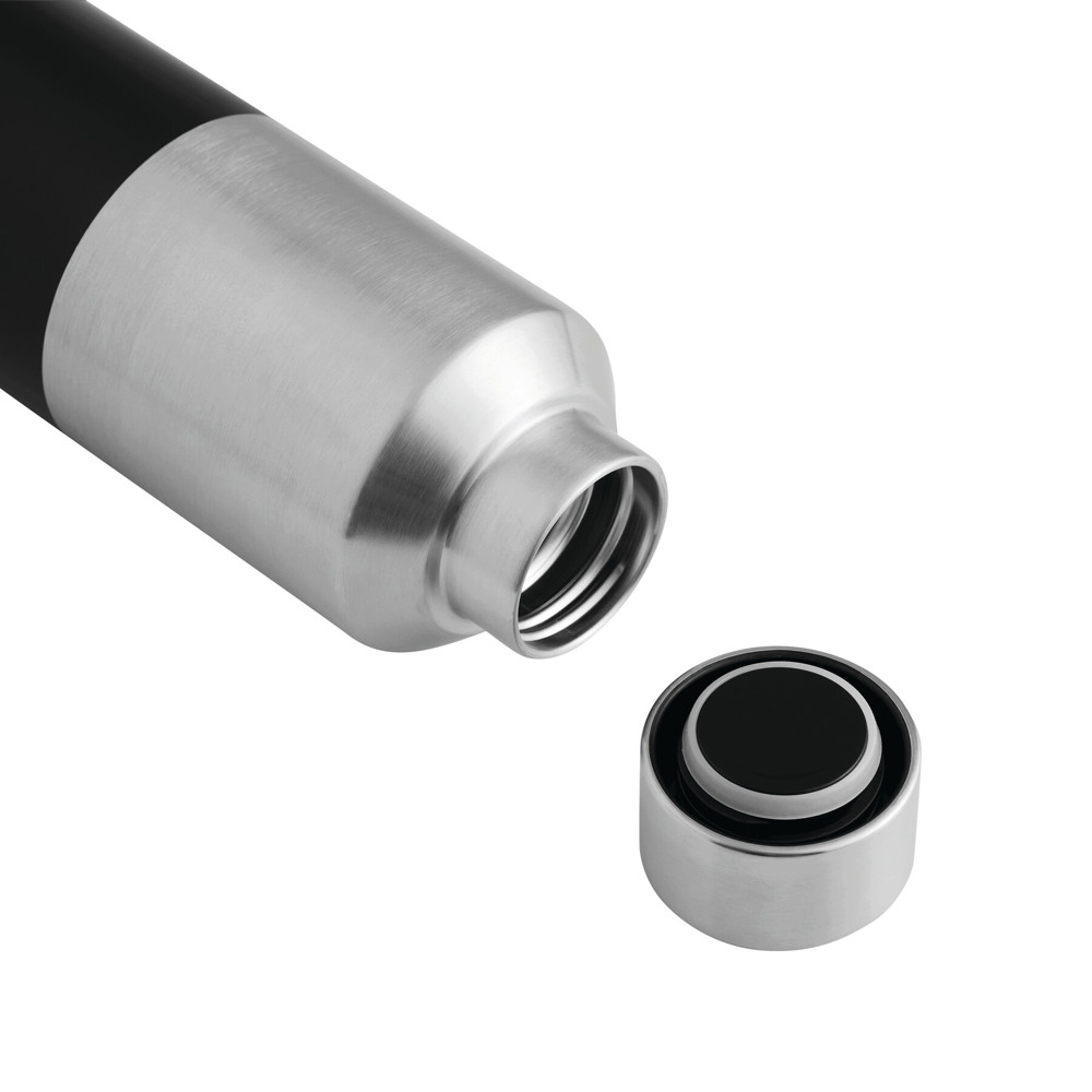 Vakuum-Isolierflasche STEECO, doppelwandig: innen aus recyceltem Edelstahl und außen aus Edelstahl, Deckel mit sicherem Schraubverschluss und Silikon-Dichtring, beschichteter Boden für gute Oberflächenhaftung, Füllmenge ca. 600 ml, hält ca. 8 Stunden warm und bis zu 12 Stunden kalt, in Box