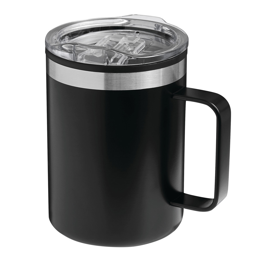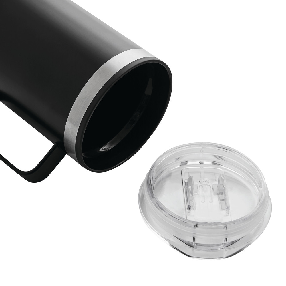 Trinkbecher STYLE MUG, doppelwandig: innen aus Kunststoff und außen aus Edelstahl, transparenter Kunststoff-Deckel mit Silikon-Dichtring und integrierter Trinköffnung zum Aufschieben, beschichteter Boden für gute Oberflächenhaftung, Füllmenge ca. 400 ml, hält ca. 2 Stunden warm und bis zu 4 Stunden kalt, in Box
