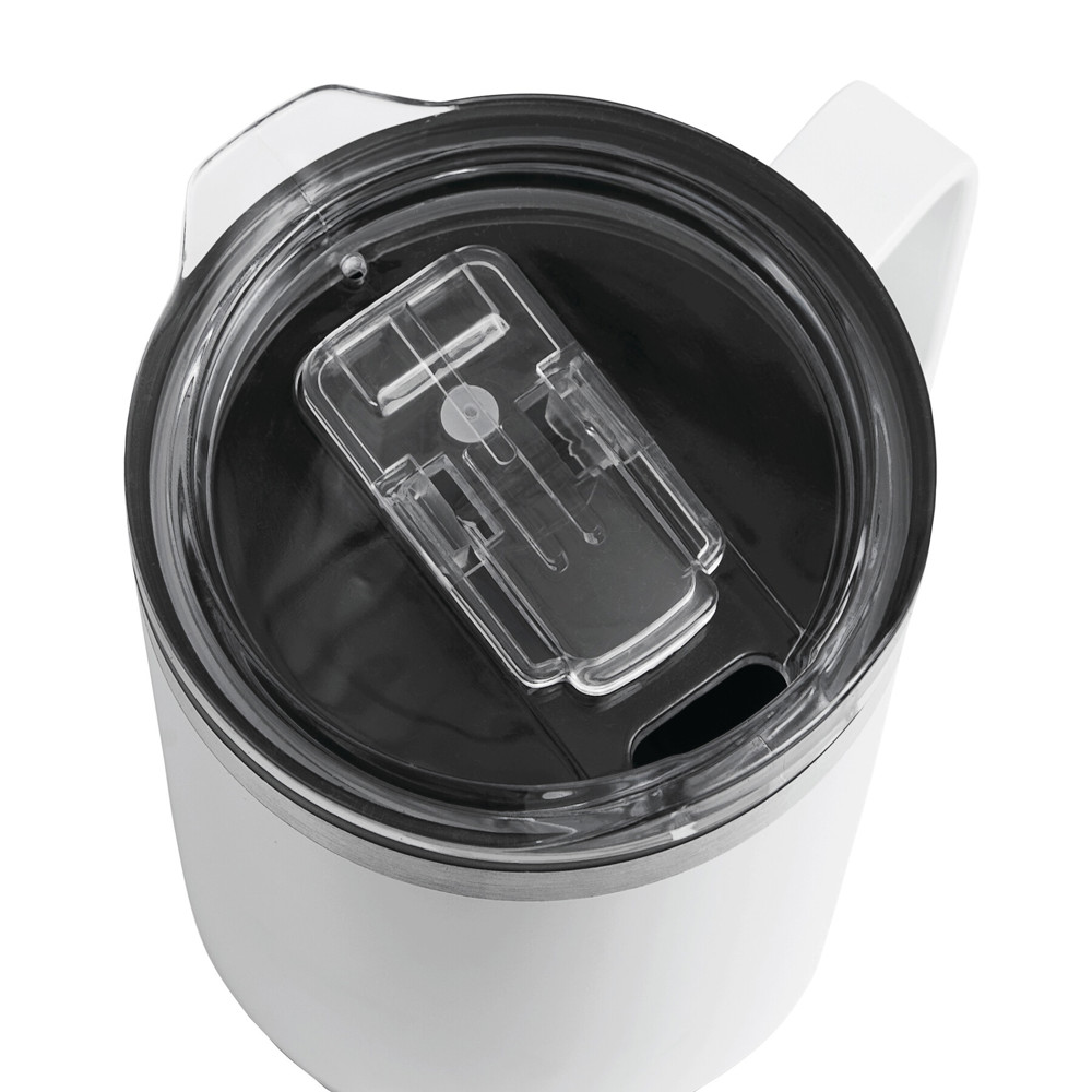 Trinkbecher STYLE MUG, doppelwandig: innen aus Kunststoff und außen aus Edelstahl, transparenter Kunststoff-Deckel mit Silikon-Dichtring und integrierter Trinköffnung zum Aufschieben, beschichteter Boden für gute Oberflächenhaftung, Füllmenge ca. 400 ml, hält ca. 2 Stunden warm und bis zu 4 Stunden kalt, in Box