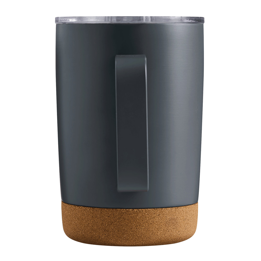 Vakuum-Isolierbecher STEELJOURNEY, doppelwandig: innen und außen aus Edelstahl, mit Korkboden und praktischem Griff, transparenter Kunststoff-Deckel mit Silikon-Dichtring und integrierter Trinköffnung zum Aufschieben, Füllmenge ca. 350 ml, hält ca. 4 Stunden warm und bis zu 8 Stunden kalt, in Box