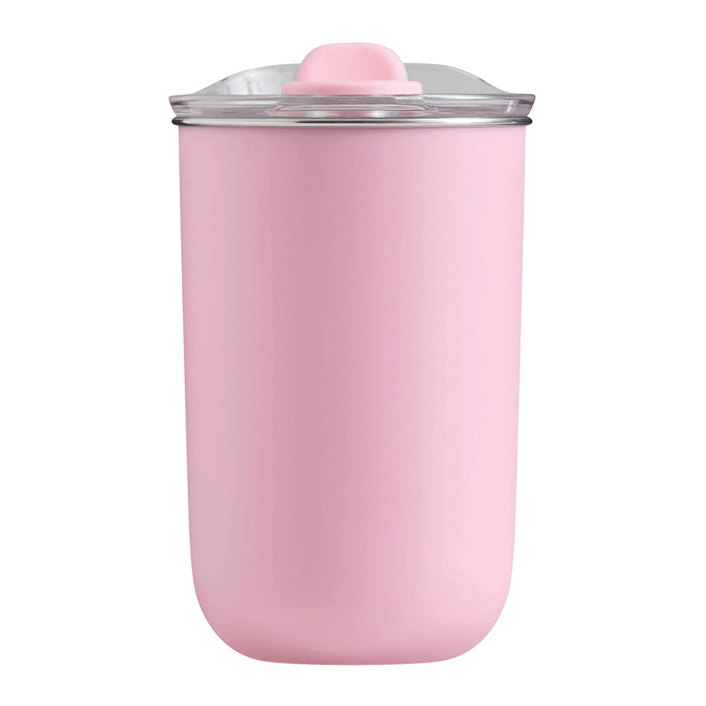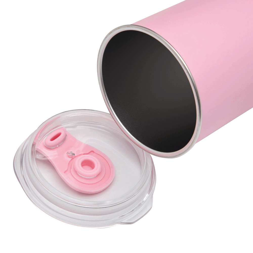 Trinkbecher SIP, doppelwandig: innen aus Edelstahl und außen aus Kunststoff, transparenter Kunststoff-Deckel mit Silikon-Dichtring und integrierter Trinköffnung (mit Silikon-Abdeckung), Füllmenge ca. 350 ml, hält ca. 2 Stunden warm und bis zu 4 Stunden kalt, nicht geeignet für Heißgetränke, in Box