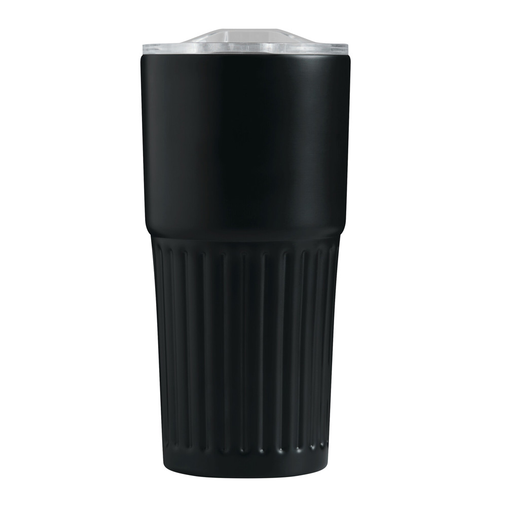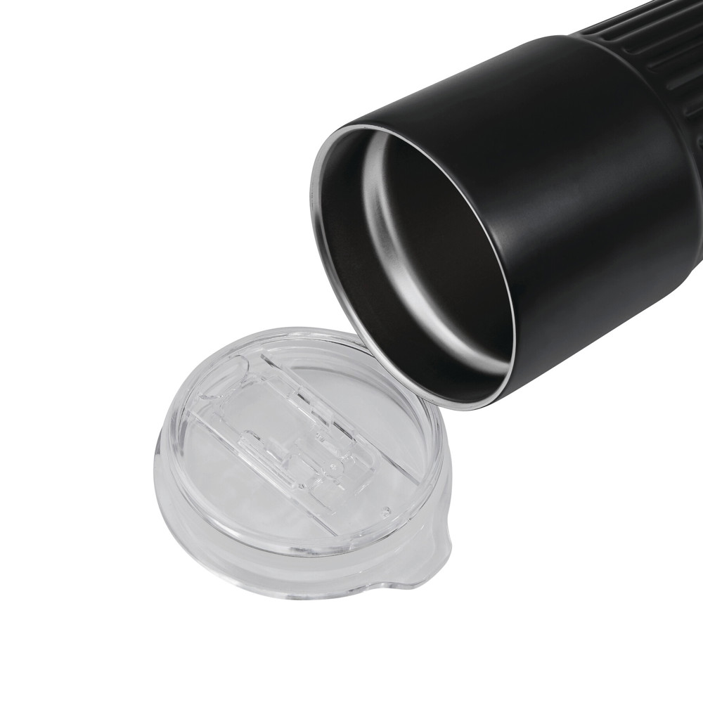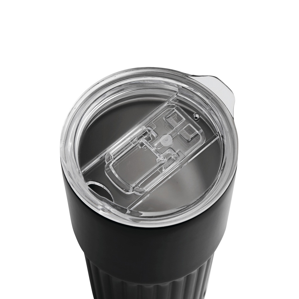 Vakuum-Isolierbecher WAVE LINE, doppelwandig: innen aus recyceltem Edelstahl und außen aus Edelstahl, transparenter Kunststoff-Deckel mit Silikon-Dichtring und integrierter Trinköffnung zum Aufschieben, beschichteter Boden für gute Oberflächenhaftung, Füllmenge ca. 600 ml, hält ca. 4 Stunden warm und bis zu 8 Stunden kalt, in Box