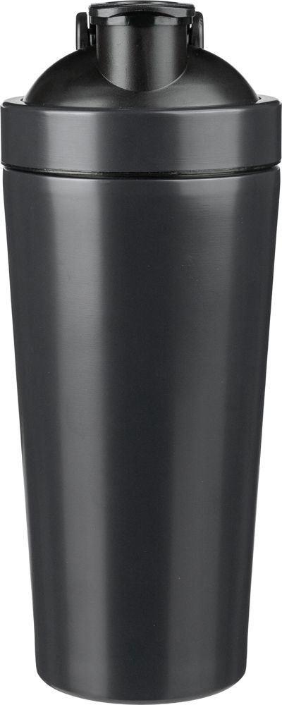 Sport-Trinkflasche aus recyceltem Edelstahl (304), einwandig, mit einem Fassungsvermögen von 750 ml. Sie verfügt über einen PP-Schraubdeckel und eine Metallkugel zum Mixen. Auf der Vorderseite befindet sich ein lasergraviertes, Recycling-Logo. Die Flasche ist einzeln in einer Kraftpapierbox verpackt.