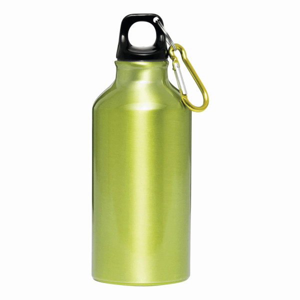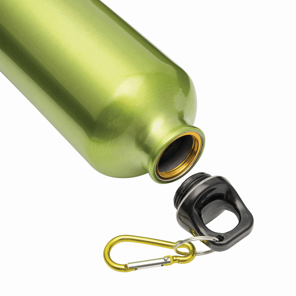 Aluminium-Trinkflasche TRANSIT: Kunststoffverschluss mit farblich abgestimmtem Karabinerhaken (der Karabiner ist NICHT als Sicherung beim Klettern geeignet), Füllmenge ca. 400 ml