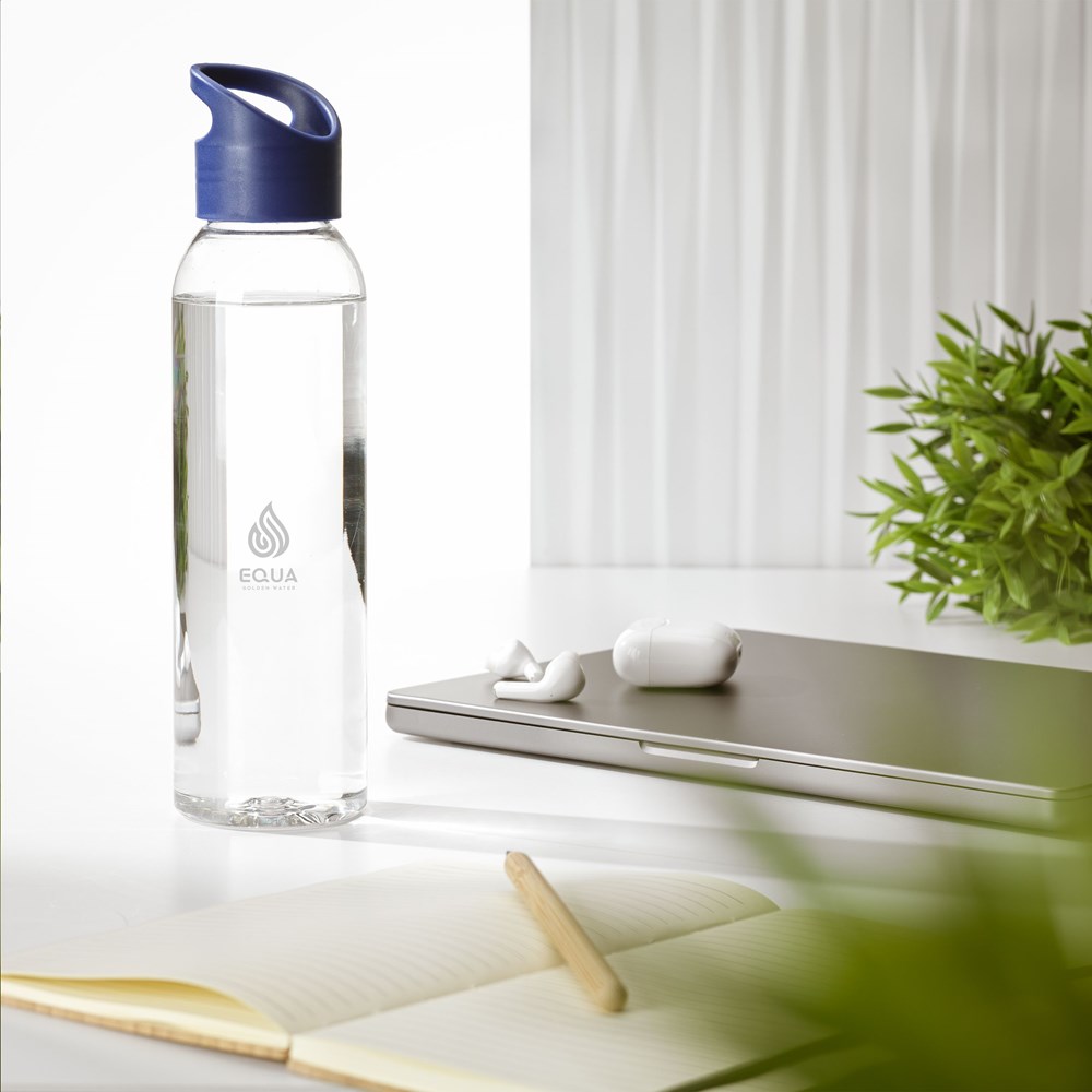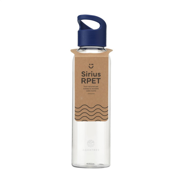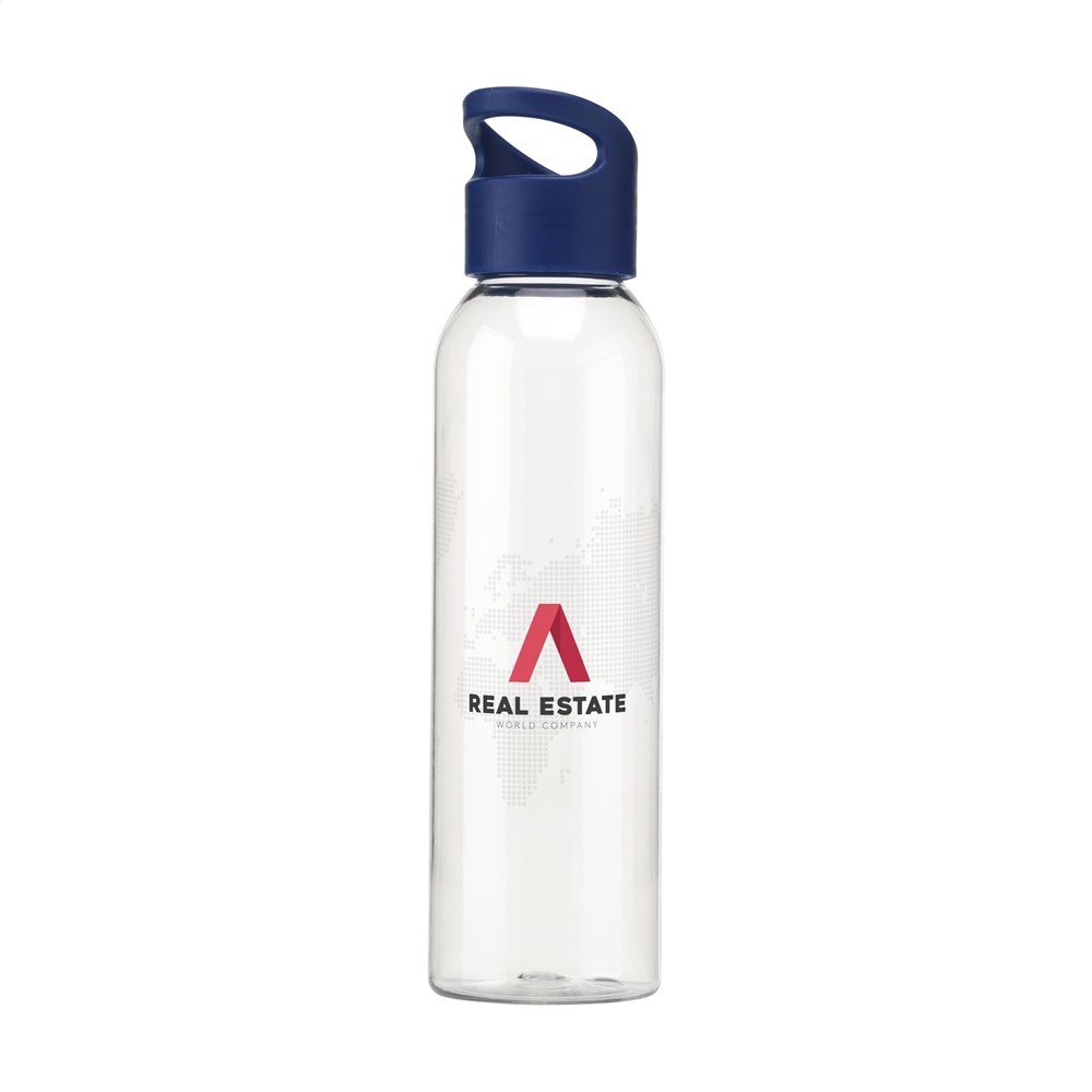 Luxuriöse Wasserflasche aus klarem RPET. Mit praktischem Schraubverschluss aus Kunststoff. Auslaufsicher und wiederverwendbar. Nicht spülmaschinengeeignet. Inhalt 650 ml. GRS-zertifiziert. Gesamtes recyceltes Material: 82%.
