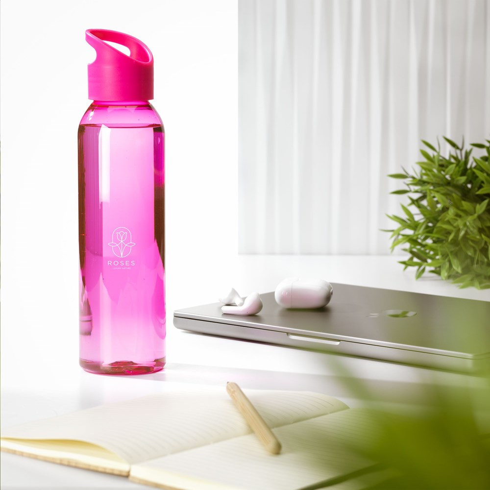 Luxuriöse Wasserflasche aus klarem RPET. Mit praktischem Schraubverschluss aus Kunststoff. Auslaufsicher und wiederverwendbar. Nicht spülmaschinengeeignet. Inhalt 650 ml. GRS-zertifiziert. Gesamtes recyceltes Material: 82%.