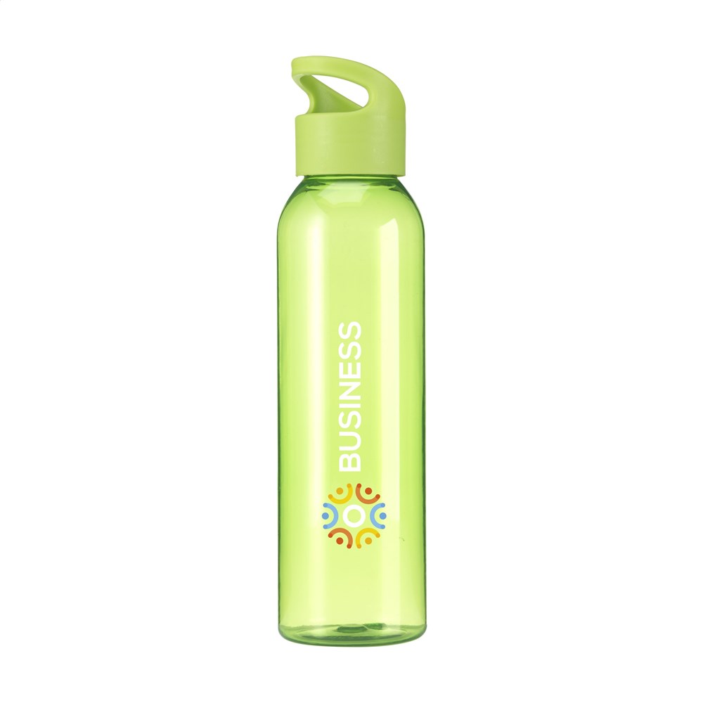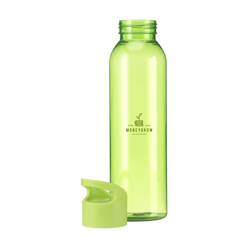 Luxuriöse Wasserflasche aus klarem RPET. Mit praktischem Schraubverschluss aus Kunststoff. Auslaufsicher und wiederverwendbar. Nicht spülmaschinengeeignet. Inhalt 650 ml. GRS-zertifiziert. Gesamtes recyceltes Material: 82%.