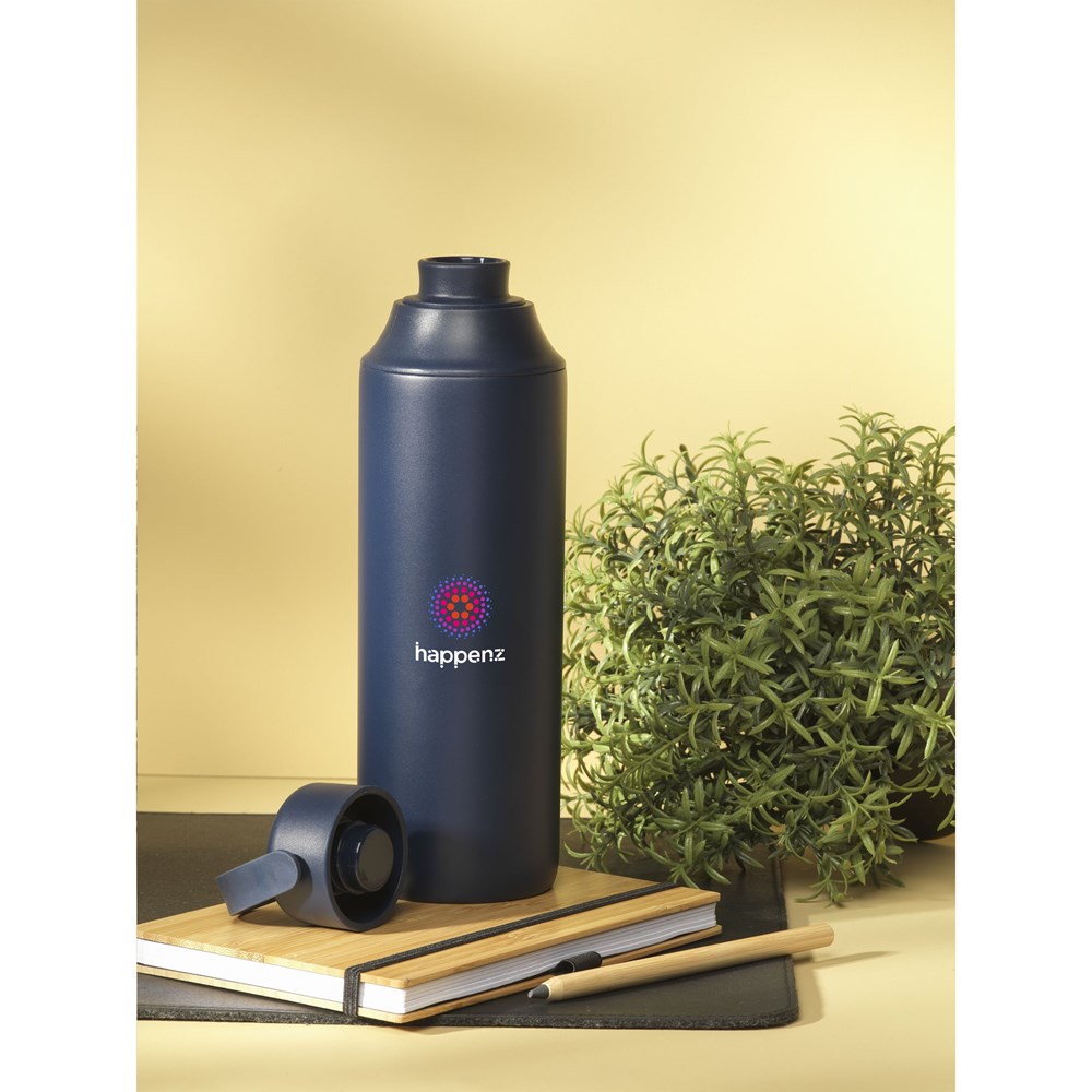 Doppelwandige Thermosflasche aus recyceltem Edelstahl. Die auslaufsichere Flasche hat eine Silikon-Trageschlaufe und 2 Öffnungen mit Schraubverschluss: eine Trinköffnung und eine großzügige Öffnung zum einfachen Reinigen der Flasche oder zum Einfüllen von Eiswürfeln. Passt in die meisten Getränkehalter und ist mit einer attraktiven Pulverbeschichtung versehen. Geeignet, um kalte oder heiße Getränke auf der richtigen Temperatur zu halten. Nicht spülmaschinengeeignet. RCS-zertifiziert. Gesamtes recyceltes Material: 72%. Fassungsvermögen 600 ml. Edelstahl kann viele Male recycelt werden – die Qualität des Materials bleibt dabei weitgehend erhalten. Durch die Verwendung von recyceltem Edelstahl kommt eine geringere Menge an neuen Rohstoffen zum Einsatz. Das bedeutet weniger Energieverbrauch und weniger Wasserverbrauch. Verpackt pro Stück.