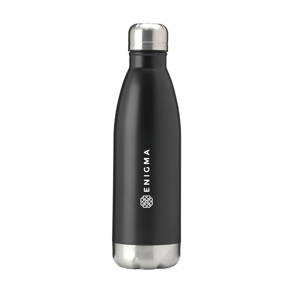 Doppelwandige, vakuumisolierte, rostfreie Wasserflasche/Thermoflasche. Mit tropfsicherem Schraubdeckel. Hergestellt in Metallic oder mit schöner, matter Beschichtung (nur schwarz und weiß). Geeignet zur Temperaturerhaltung von kaltem oder heißem Wasser. Nicht spülmaschinengeeignet. Fassungsvermögen 500 ml. Verpackt pro Stück.