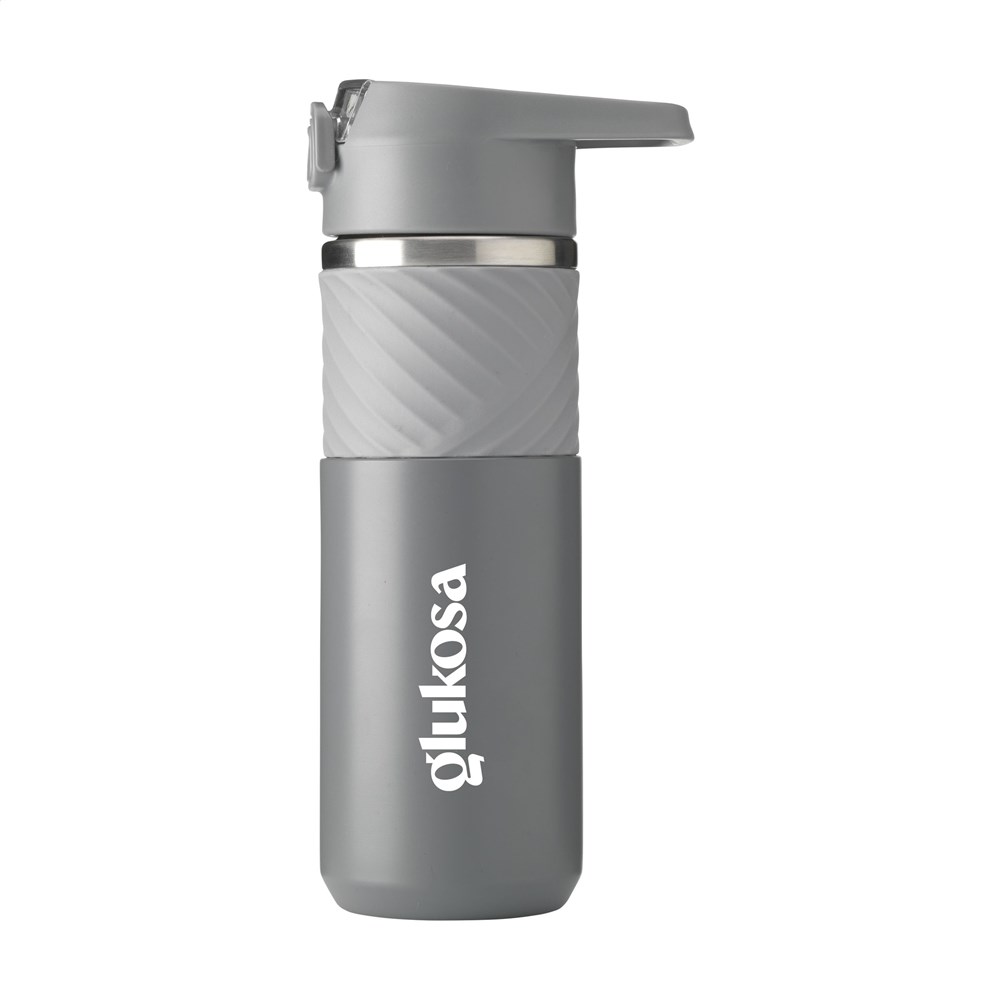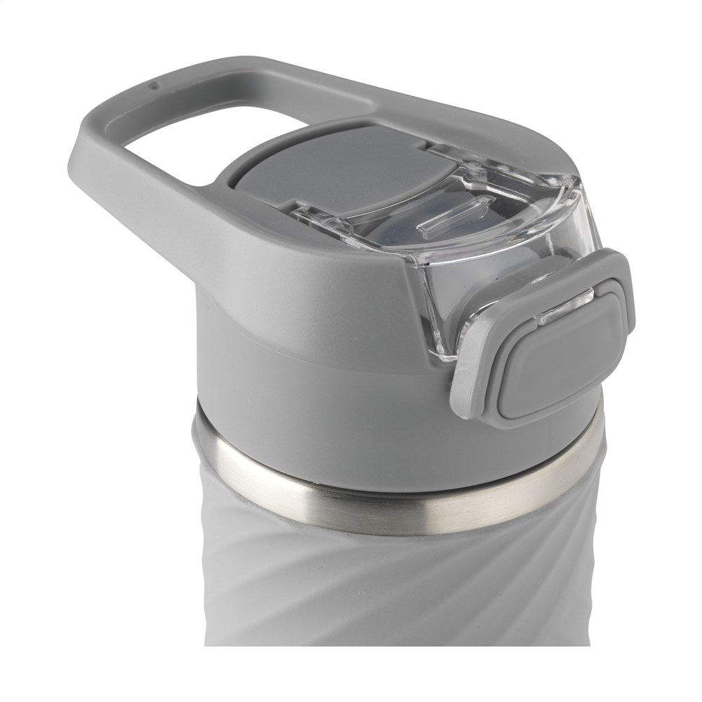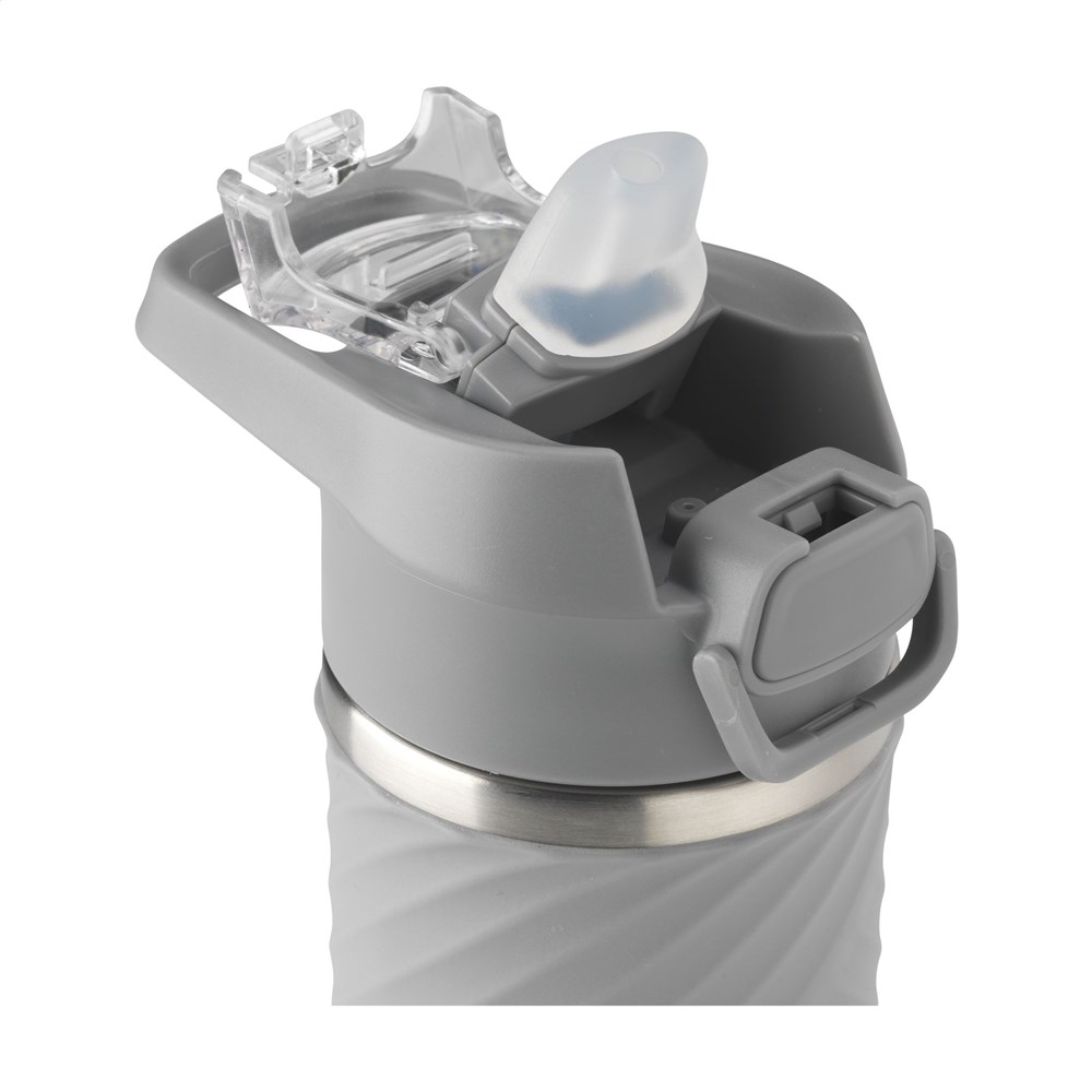Doppelwandige Wasserflasche/Thermosflasche aus recyceltem Edelstahl. Mit einem auslaufsicheren PP-Schraubverschluss, einer zusammenklappbaren Trinktülle aus Silikon und einem Strohhalm. Die Trinktülle ist mit einem transparenten Deckel mit Druckknopf und Verriegelung hygienisch verschlossen. Praktisch beim Sport und im Auto. Das liegt daran, dass die Flasche beim Trinken nicht gekippt werden muss. Die Flasche ist mit einem großzügigen, rutschfesten Griff aus Gummi ausgestattet. Dank ihres schicken und gleichzeitig coolen Designs fällt die Flasche sofort ins Auge. Geeignet, um kalte oder heiße Getränke auf der richtigen Temperatur zu halten. Nicht spülmaschinengeeignet. RCS-zertifiziert. Gesamtes recyceltes Material: 68%. Fassungsvermögen: 500 ml. Edelstahl kann viele Male recycelt werden – die Qualität des Materials bleibt dabei weitgehend erhalten. Durch die Verwendung von recyceltem Edelstahl kommt eine geringere Menge an neuen Rohstoffen zum Einsatz. Das bedeutet weniger Energieverbrauch und weniger Wasserverbrauch. Verpackt pro Stück.