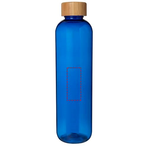 Wiederverwendbare Wasserflasche aus recyceltem Kunststoff mit einem eleganten Bambusdeckel. Die einwandige Flasche ist BPA-frei und wurde nach dem deutschen Lebensmittelrecht (LFGB) geprüft und zugelassen. Auf Phthalate geprüft und zugelassen gemäß den REACH-Vorschriften. Das Bambusholz stammt aus nachhaltigen, umweltfreundlichen und sozial verantwortlichen Quellen. Das Fassungsvermögen beträgt 950 ml. Handwäsche empfohlen. Verpackt in einer Geschenkbox aus Recyclingkarton.