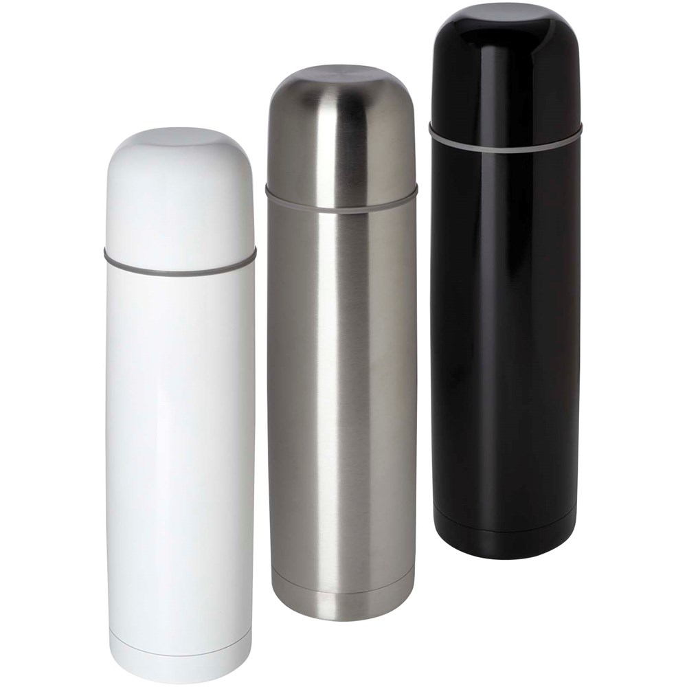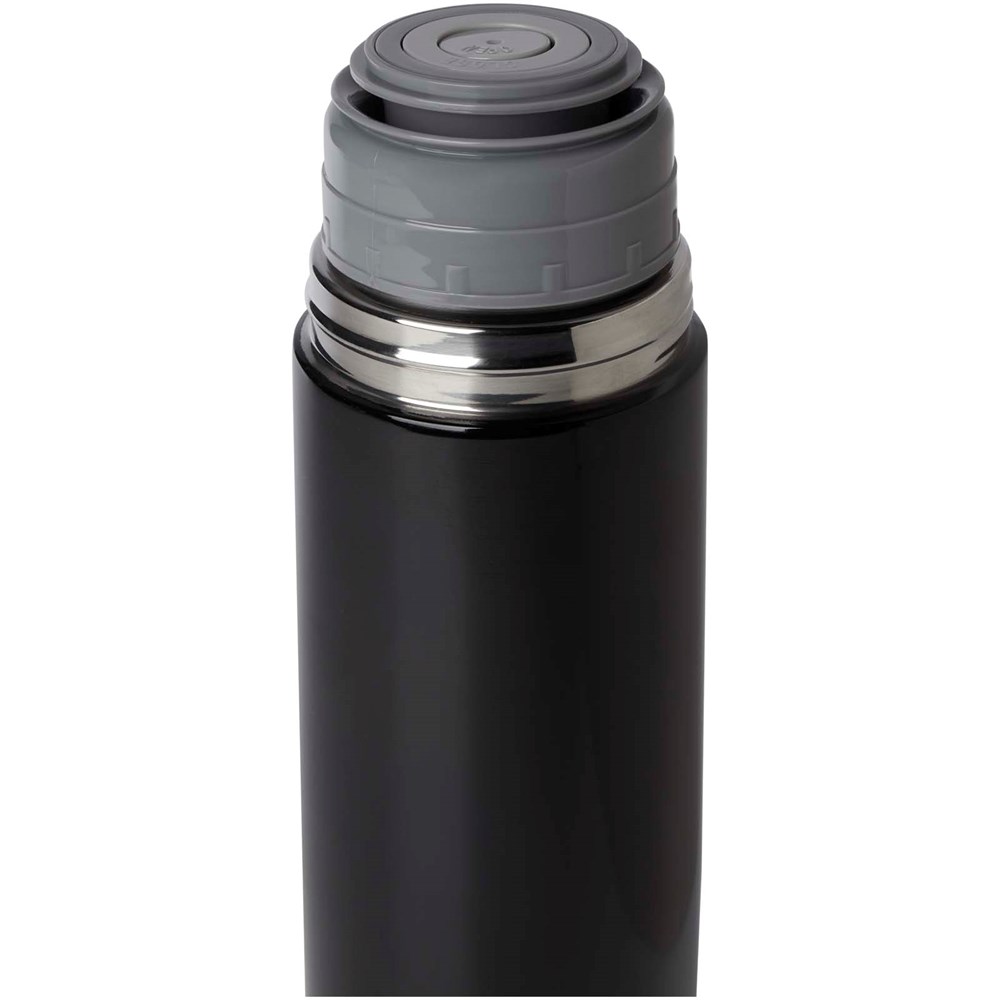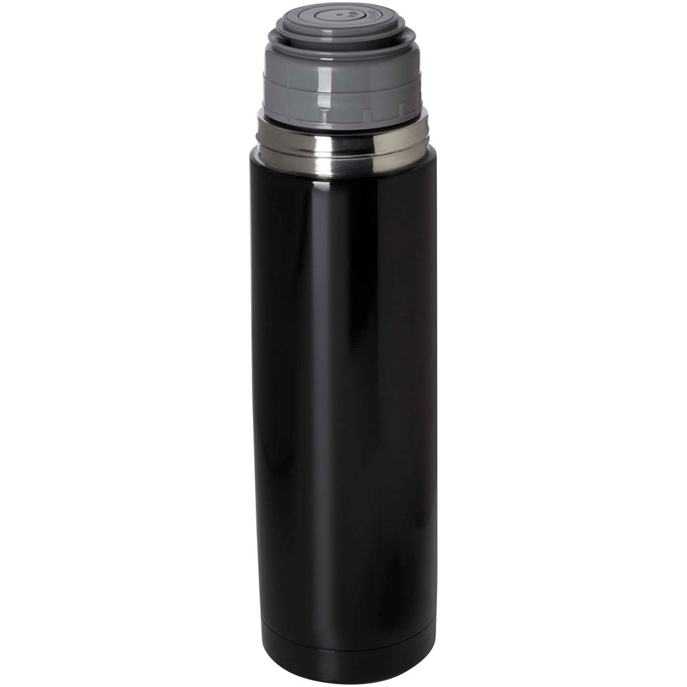 Doppelwandige, RCS-zertifizierte Isolierflasche mit Becherdeckel. Einhandausgießer mit Druckknopf, der sich automatisch schließt, wenn der Deckel auf die Flasche geschraubt wird. Das Fassungsvermögen beträgt 750ml. Hält Getränke 12 Stunden lang heiß oder 24 Stunden lang kalt.
