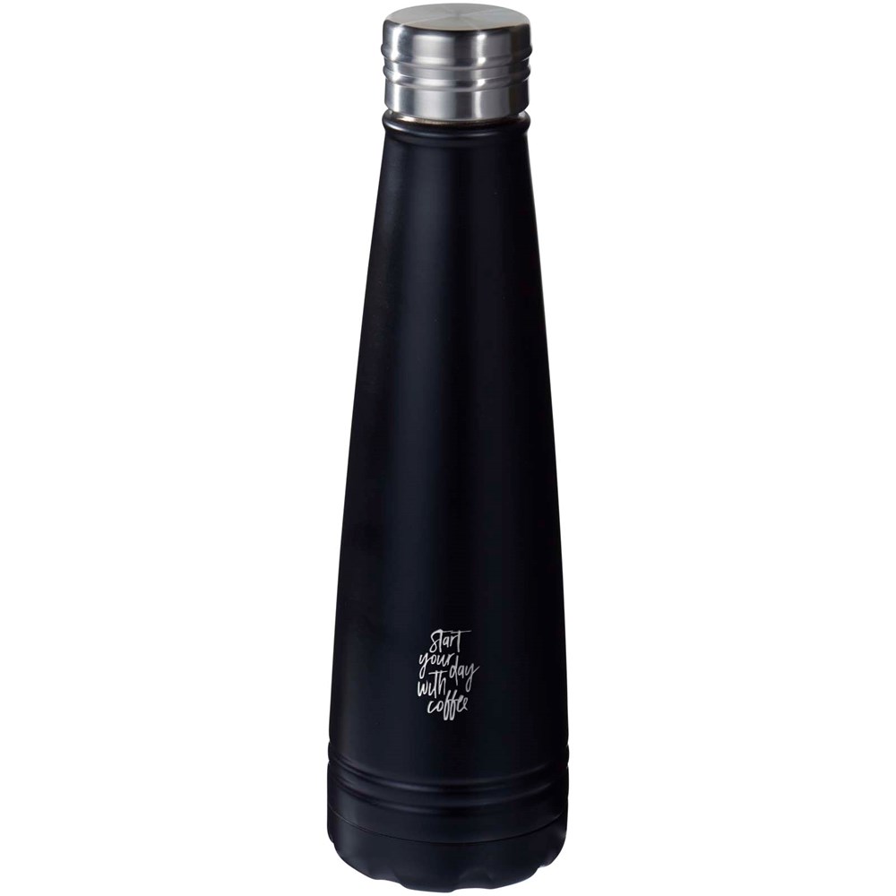 Die Duke Isolierflasche ist aus doppelwandigem Edelstahl 18/8 mit Vakuumisolierung. Die Innenwand ist mit Kupfer plattiert, für ultimative Leitfähigkeit, um Getränke für bis zu 12 Stunden heiß zu halten und bis zu 48 Stunden kalt. Volumen 500 ml. Verpackt in einer Avenue Geschenkbox.