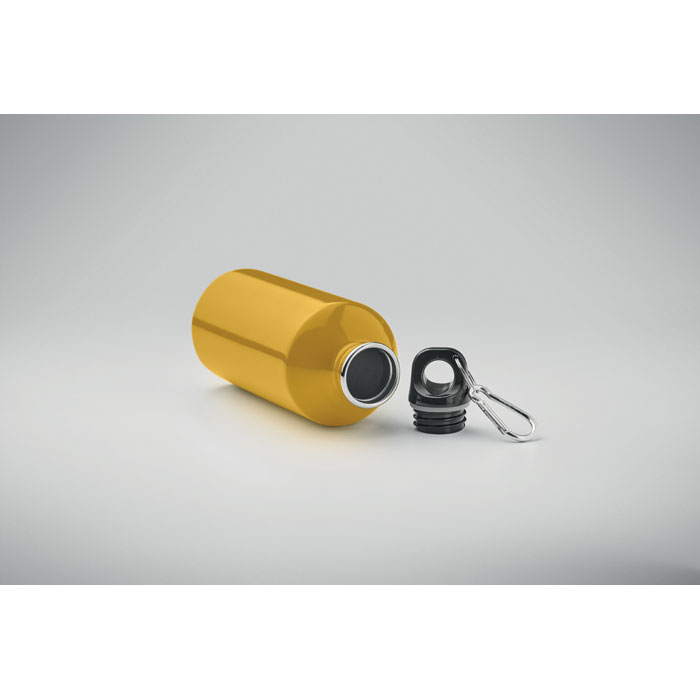 Einwandige Trinkflasche aus recyceltem Edelstahl (90 % recycelter Edelstahl und 10 % Edelstahl) mit Karabiner. Füllmenge: 500 ml. Sublimationsdruck nur auf weißem Material möglich. Auslaufsicher. Der Karabiner ist NICHT als Sicherung beim Klettern geeignet. Da der einwandige Becher die Hitze nach Außen leiten kann, kann der Artikel heiß werden.