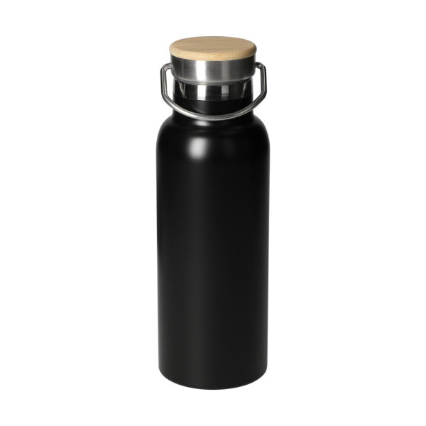 Isolierflasche im minimalistischen Design - Perfekt für Arbeit, Yoga, Wandern, Reisen und Co. Leichte, doppelwandige Flasche aus Edelstahl mit einem Schraubdeckel. Dieser verfügt über eine Silikondichtung, einen Tragegriff für den leichteren Tansport und einer Deckelkappe aus Bambus- Holz. Perfekt dazu passt der Siebeinsatz 01719 (Achtung: Passt nur bei den schwarzen und silbernen Flaschen). Füllmenge: 0,5 Liter.