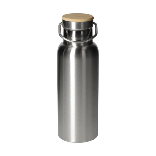 Isolierflasche im minimalistischen Design - Perfekt für Arbeit, Yoga, Wandern, Reisen und Co. Leichte, doppelwandige Flasche aus Edelstahl mit einem Schraubdeckel. Dieser verfügt über eine Silikondichtung, einen Tragegriff für den leichteren Tansport und einer Deckelkappe aus Bambus- Holz. Perfekt dazu passt der Siebeinsatz 01719 (Achtung: Passt nur bei den schwarzen und silbernen Flaschen). Füllmenge: 0,5 Liter.