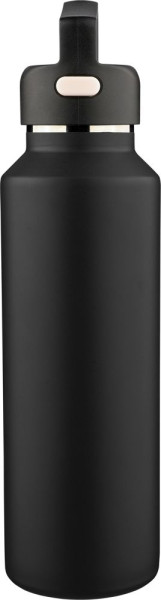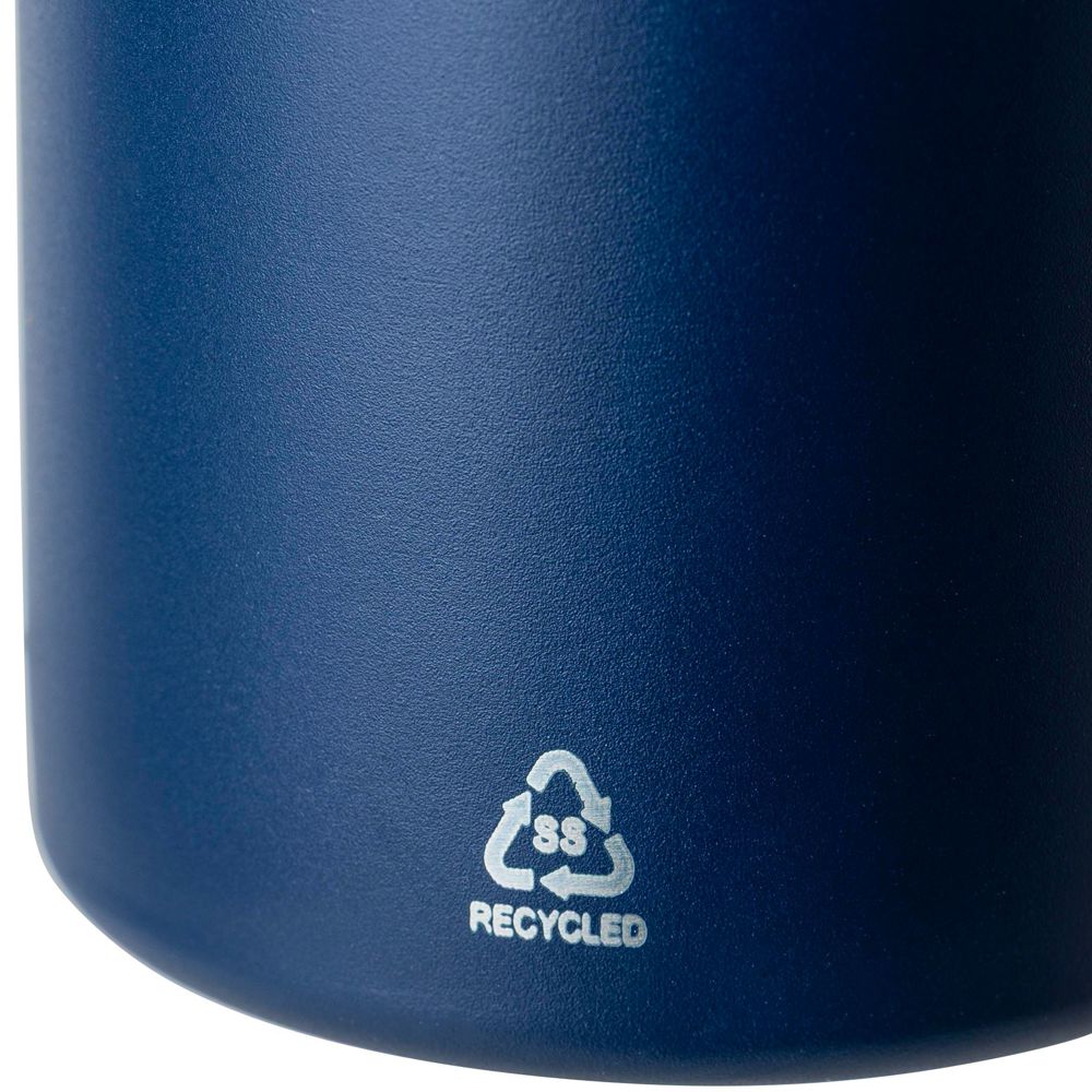 Doppelwandige Isolierflasche (600 ml) aus recyceltem Edelstahl mit Innenteil aus Edelstahl 304 und Außenteil aus Edelstahl 201. Mit PP-Deckel mit integrierter Trageschlaufe und seitlichen Druckknöpfen zum Öffnen. Zum Entriegeln beide Knöpfe drücken und den Deckel wieder einrasten lassen, um ihn sicher zu verschließen. Inklusive lasergraviertem Recycling-Logo. Einzeln verpackt in einem braunen Karton.
