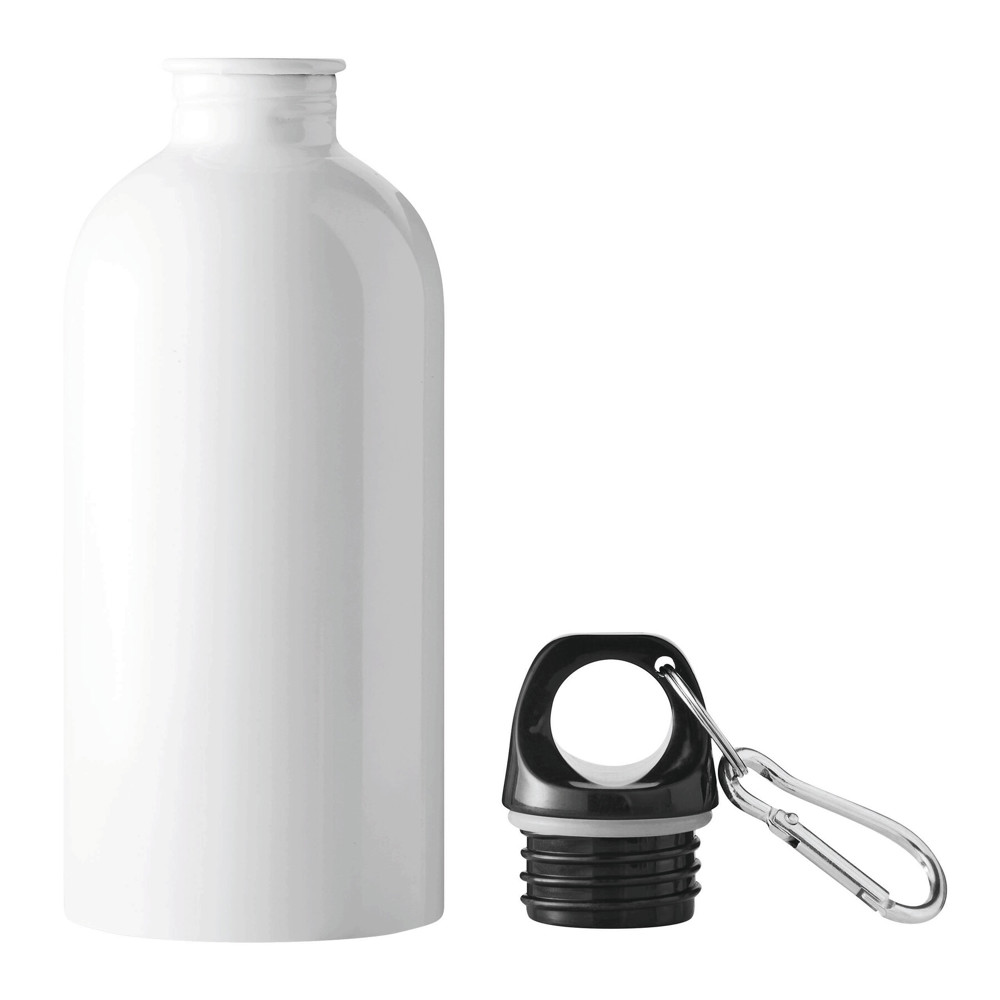 Trinkflasche SMALLTRANSIT, einwandig: aus recyceltem Edelstahl, schwarzer Kunststoff-Deckel mit sicherem Schraubverschluss, Silikon-Dichtring, Tragegriff, Schlüsselring und Karabinerhaken (der Karabiner ist NICHT als Sicherung beim Klettern geeignet), Füllmenge ca. 550 ml