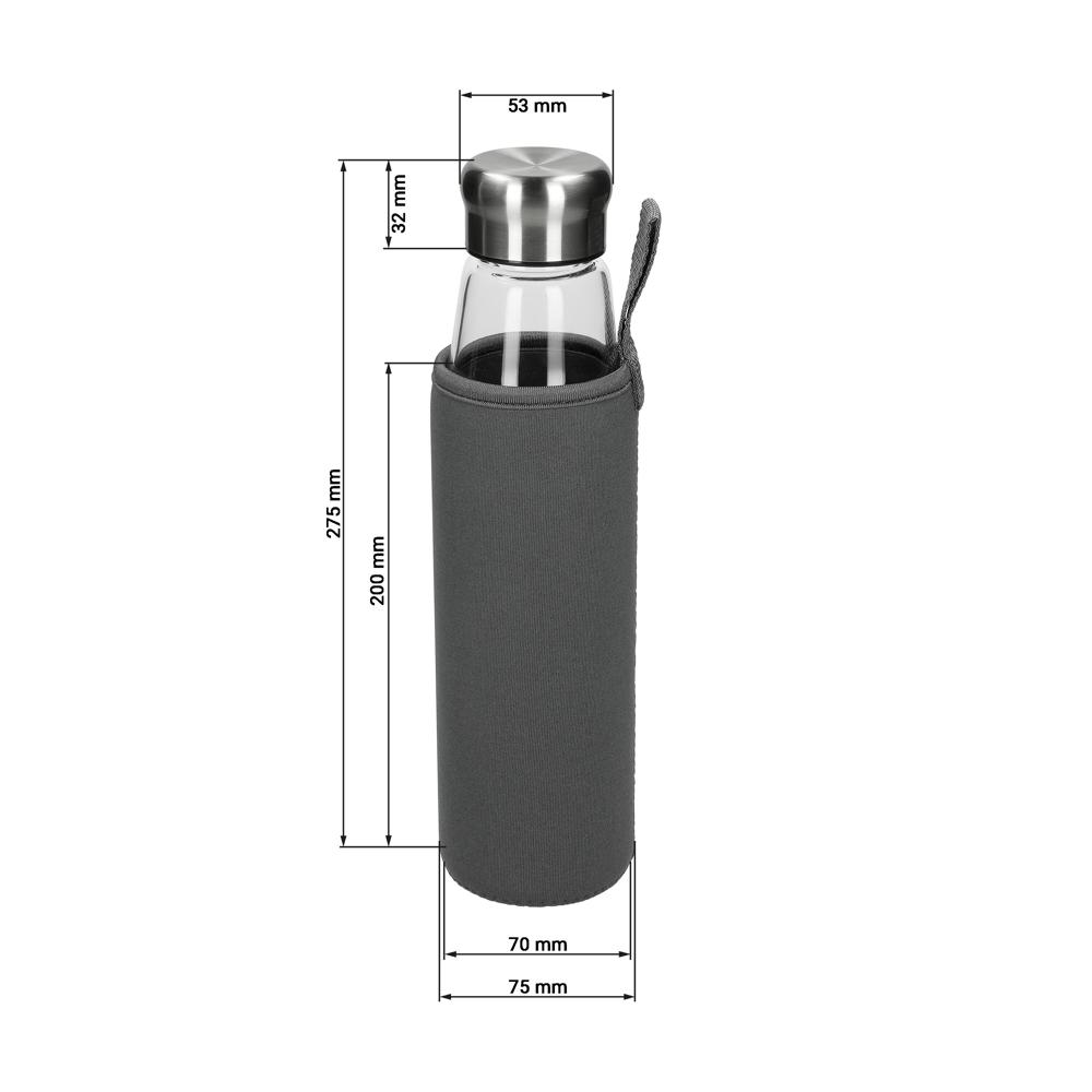 Schicke Borosilikat-Glasflasche mit Schraubverschluss aus Edelstahl inkl. Silikondichtung. Die griffige, graue Synthesekautschukhülle mit Halteschlaufe hält die Temperatur der Getränke länger konstant. Zudem schützt sie die Hände bei heißen Getränken vor dem warmen Glas. Füllmenge: 0,7 Liter.