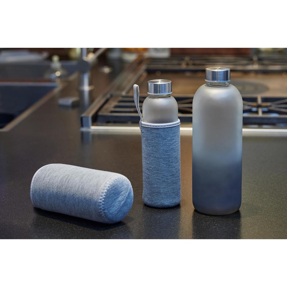 Ein echter Hingucker! Die Flasche aus Sodalime-Glas verfügt über einen dezenten matten Farbverlauf von dunkelgrau nach hellgrau. Verschlossen wird sie mit einem Metalldeckel mit Schraubverschluss. Die farblich passende graue Synthese-Kautschuk-Hülle sorgt dafür, dass die Getränke länger ihre Temperatur halten. Füllmenge: 0,45 Liter.
