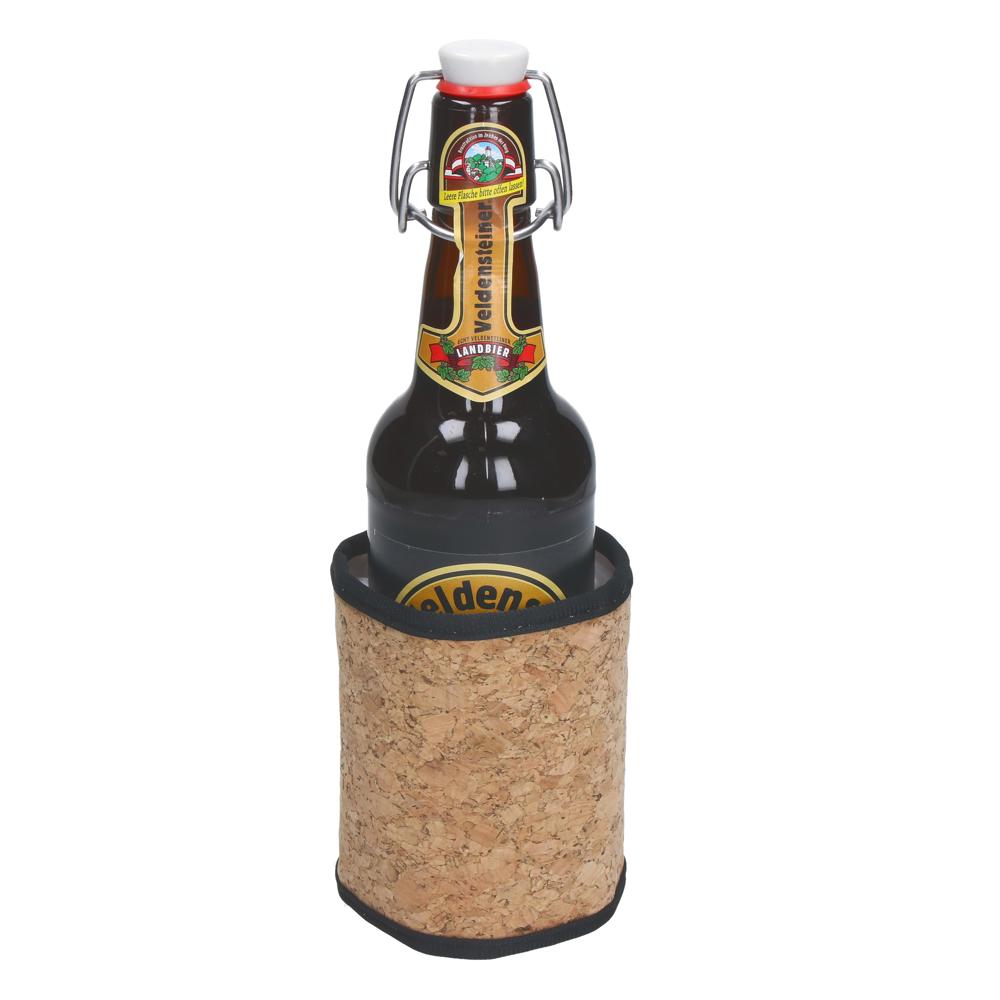 Cool unterwegs. Praktische Kühlmanschette mit flexiblem Kork außen und sechs einzelnen Kühlkammern innen. Zum Abkühlen einfach ins Kühlfach legen. Auch im kalten Zustand passen sich die Gelkammern perfekt an die Flaschenform an. Der großzügige Klettverschluss garantiert sicheren Halt. Geeignet für Flaschen bis 0,5 Liter und immer wieder verwendbar.