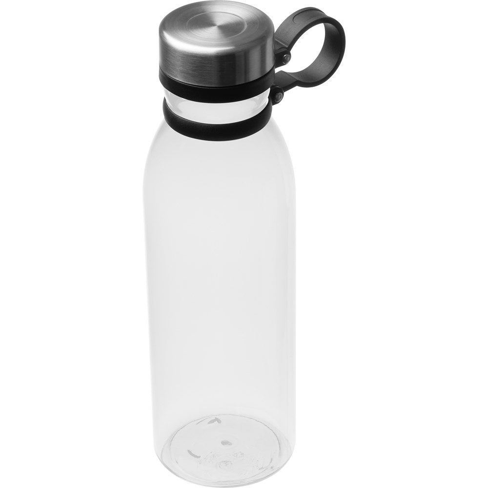 Auslaufsichere Trinkflasche aus PET mit einem Fassungsvolumen von 780 ml. Ihre Werbung drucken wir auf die Flasche. Gravur auf dem Edelstahldeckel auf Anfrage möglich.