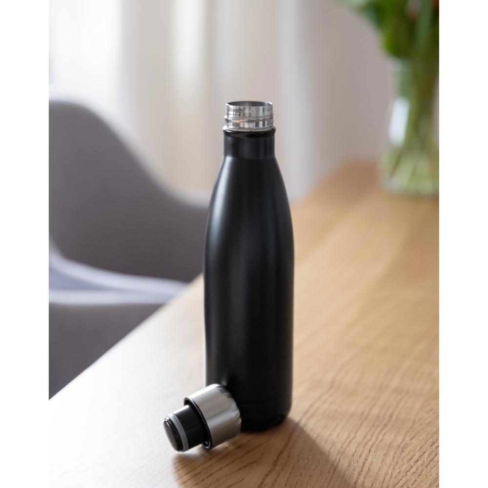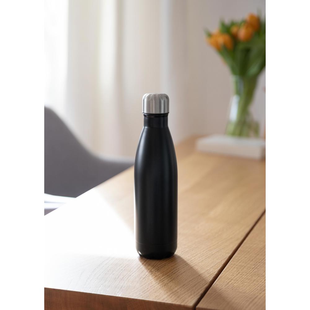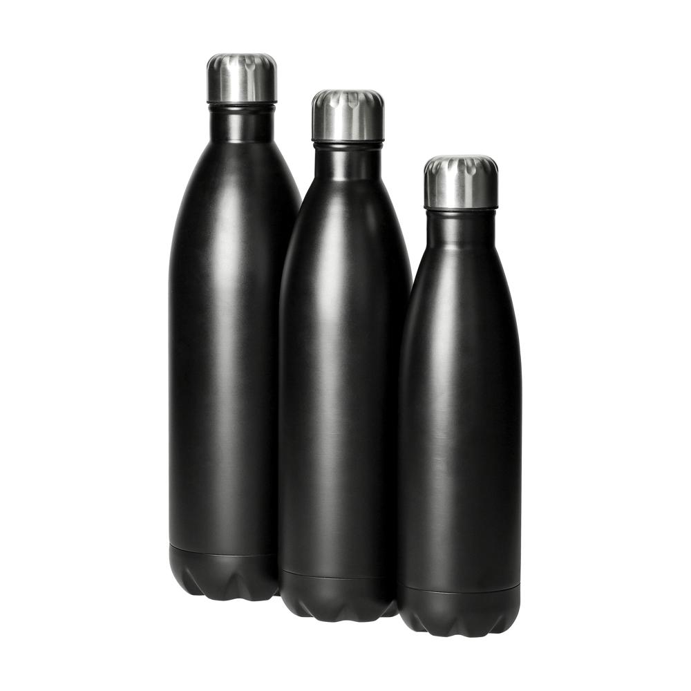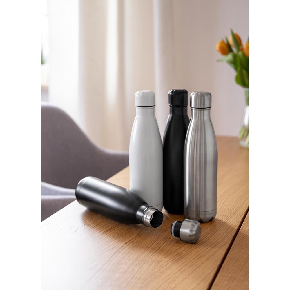 Hochwertige Vakuum Flasche aus Edelstahl - Ideal für daheim und unterwegs. Die doppelwandige Isolierung hält die Innentemperatur unabhängig von der Außentemperatur aufrecht und somit Ihre Getränke länger warm oder kalt. Der Silikonring im Inneren des Deckels macht die Flasche auslaufsicher. Erhältlich in 3 verschiedenen Größen. Füllmenge: 0,5 Liter.