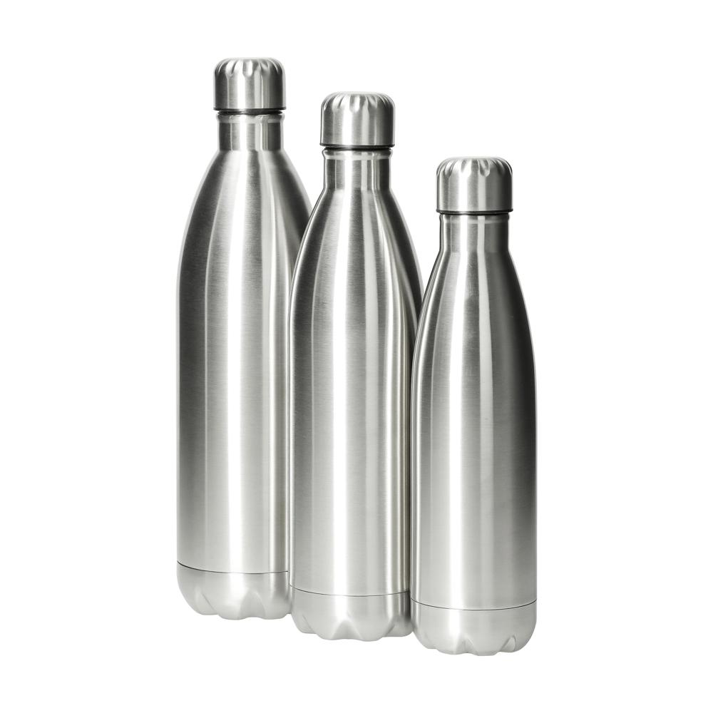Hochwertige Vakuum Flasche aus Edelstahl - Ideal für daheim und unterwegs. Die doppelwandige Isolierung hält die Innentemperatur unabhängig von der Außentemperatur aufrecht und somit Ihre Getränke länger warm oder kalt. Der Silikonring im Inneren des Deckels macht die Flasche auslaufsicher. Erhältlich in 3 verschiedenen Größen. Füllmenge: 1,0 Liter.
